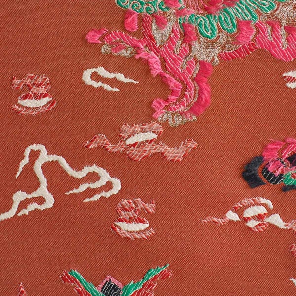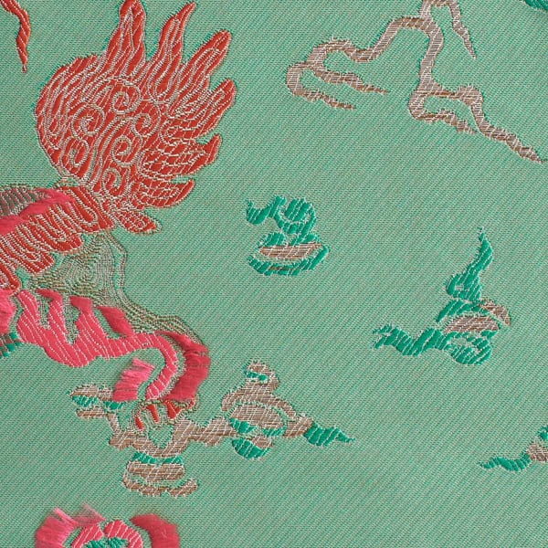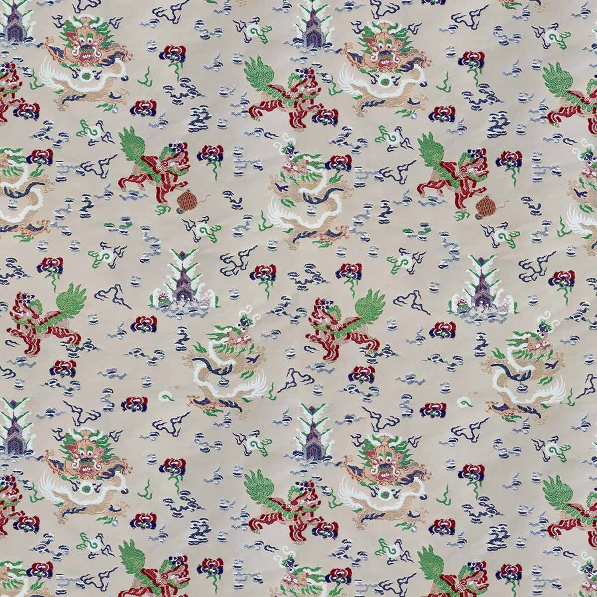 Scaramouche de Dedar, inspiré des kimonos, enchante les espaces avec son motif ludique tissé dans une armure satinée. Le textile met en scène des dragons sympathiques à queues bouffantes, gambadant à quatre pattes dans un jardin nippon. Des pavillons et des plantes figurent également dans le décor, ingénieusement ponctué de franges pour enrichir la texture.