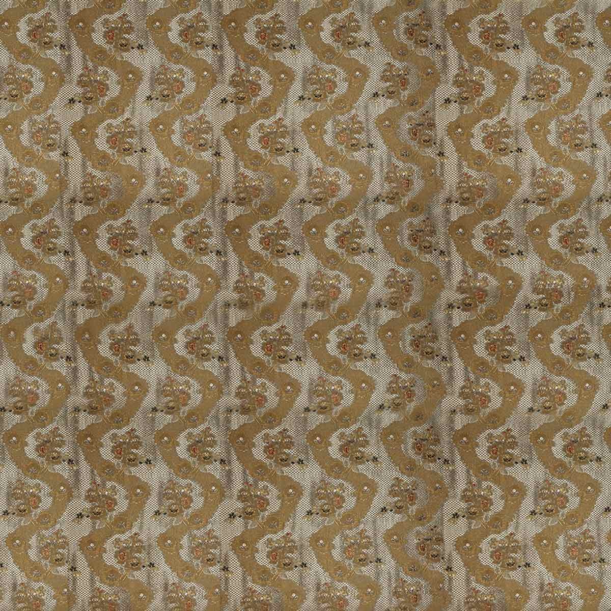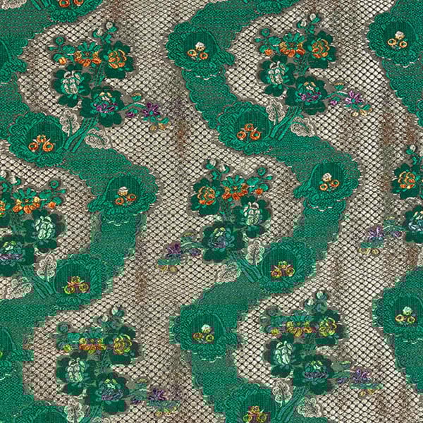 Somptueux et raffiné, le design de Delicious Manners nous raconte l’élégance des salons du XVIIIe siècle. Signé Dedar, ce tissu arbore un motif floral brodé, où les fleurs s’épanouissent dans un jardin abstrait formé par des allées de gazon ondulantes. Ses couleurs profondes sont mises en valeurs par un arrière-plan méticuleusement ornementé. Cette combinaison évoque le dialogue dynamique entre les décorations d’intérieur et les habits aristocratiques.