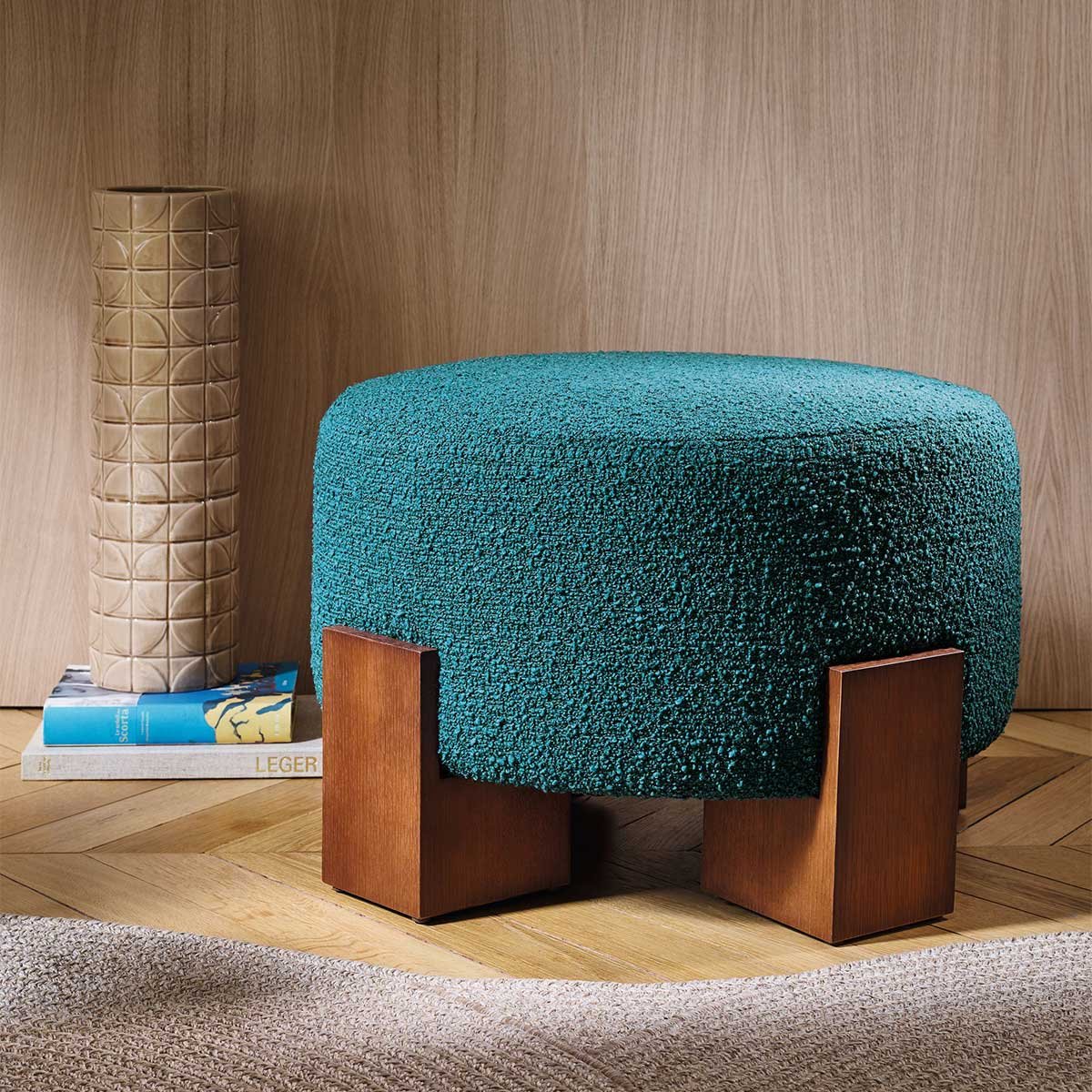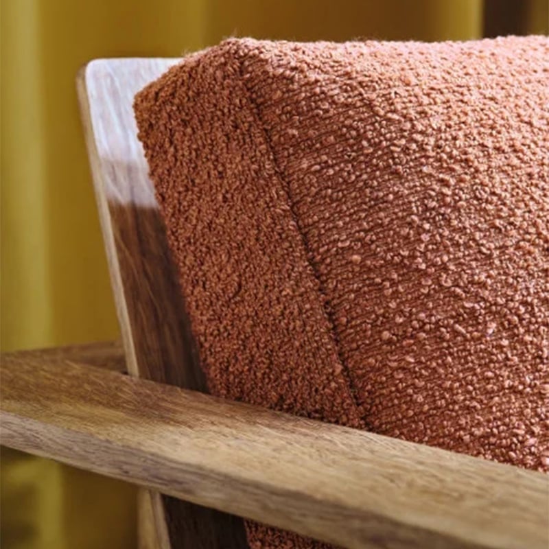 Alpine, un tissu laineux créé par Casamance, invite la chaleur et la douceur dans les espaces. Il séduit par sa texture en bouclette, joignant ainsi l’attrait visuel à la tactilité. La surface émet un reflet lumineux qui nuance la couleur franche. Les boucles paraissent plus claires que le fond, apportant un effet de profondeur et de double armure au textile.