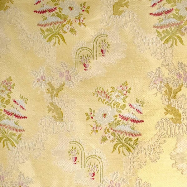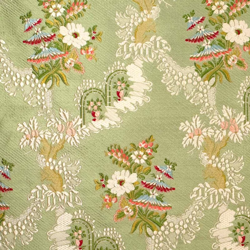 Originalement présent sur une robe Louis XV et réedité par la maison Charles Burger, le motif du tissu Chanteloup se décline dans des teintes pastel élégantes. Légèrement texturée, cette soie aux reflets nacrés révèle des silhouettes de fleurs délicates. Son aspect brillant ajoute de la préciosité et du luxe aux décors.