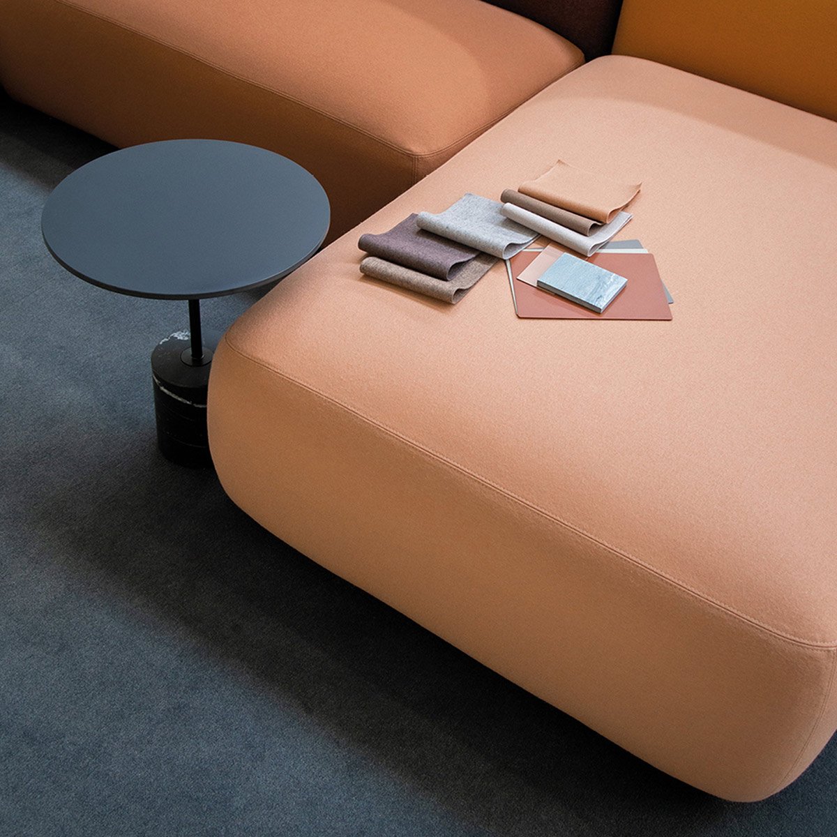 Gabriel réinvente la technique du feutrage avec Focus, un drap de laine robuste et chaleureux. Sous son aspect bouilli légèrement duveteux, le textile dévoile une texture étroite en sergé. Les fibres sont finement cardées à la main avant le tissage et le foulonnage. L’armure devient ainsi plus compacte, difficile à effilocher, tout en gardant un charme douillet.
