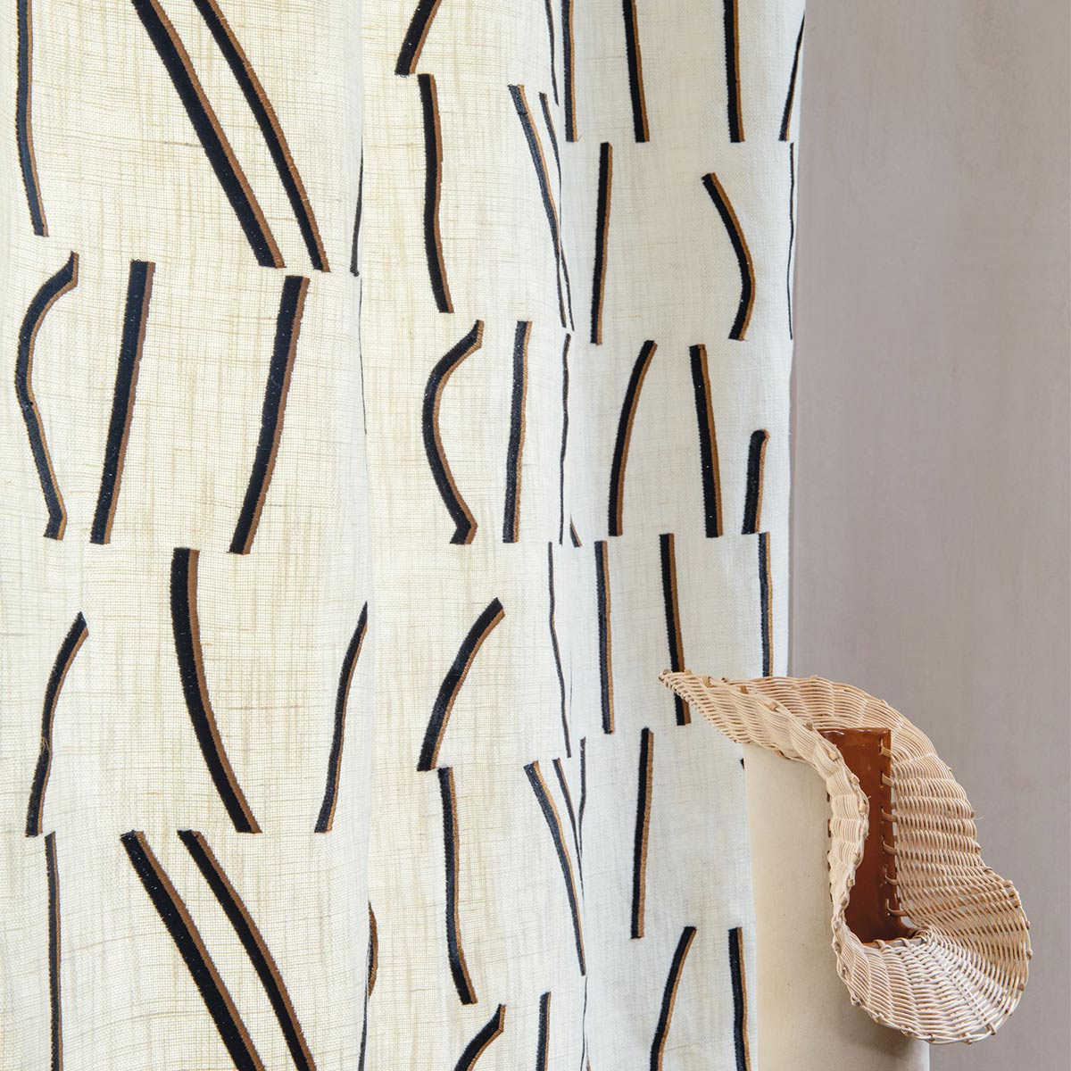 Un tissu de la maison Casamance, Bejuco présente un design abstrait inspiré des lianes tropicales. Une broderie bicolore, réalisée avec deux fils différents, s'étend délicatement sur un fond ouvert de teinte claire. Conçu à partir d'un mélange de coton et de lin, Bejuco se transforme en une toile légère, offrant un tombé ample. Cette création évoque l'artisanat des lianes utilisées pour la vannerie, fusionnant fonctionnalité et esthétisme.