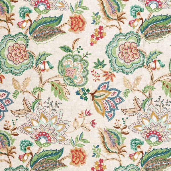 Progettato da Osborne & Little, Samode è un omaggio allo sfarzo e alla magnificenza del Samode Palace nel Rajasthan. Come una custodia di lino, questo tessuto rivela un motivo floreale paisley, emblema dell'artigianato orientale. Questo motivo è ricamato con precisione e ricchezza di colori che catturano l'occhio. La trama naturale del lino offre un drappeggio ampio e aggraziato, evocando l'eleganza dei tessuti reali.