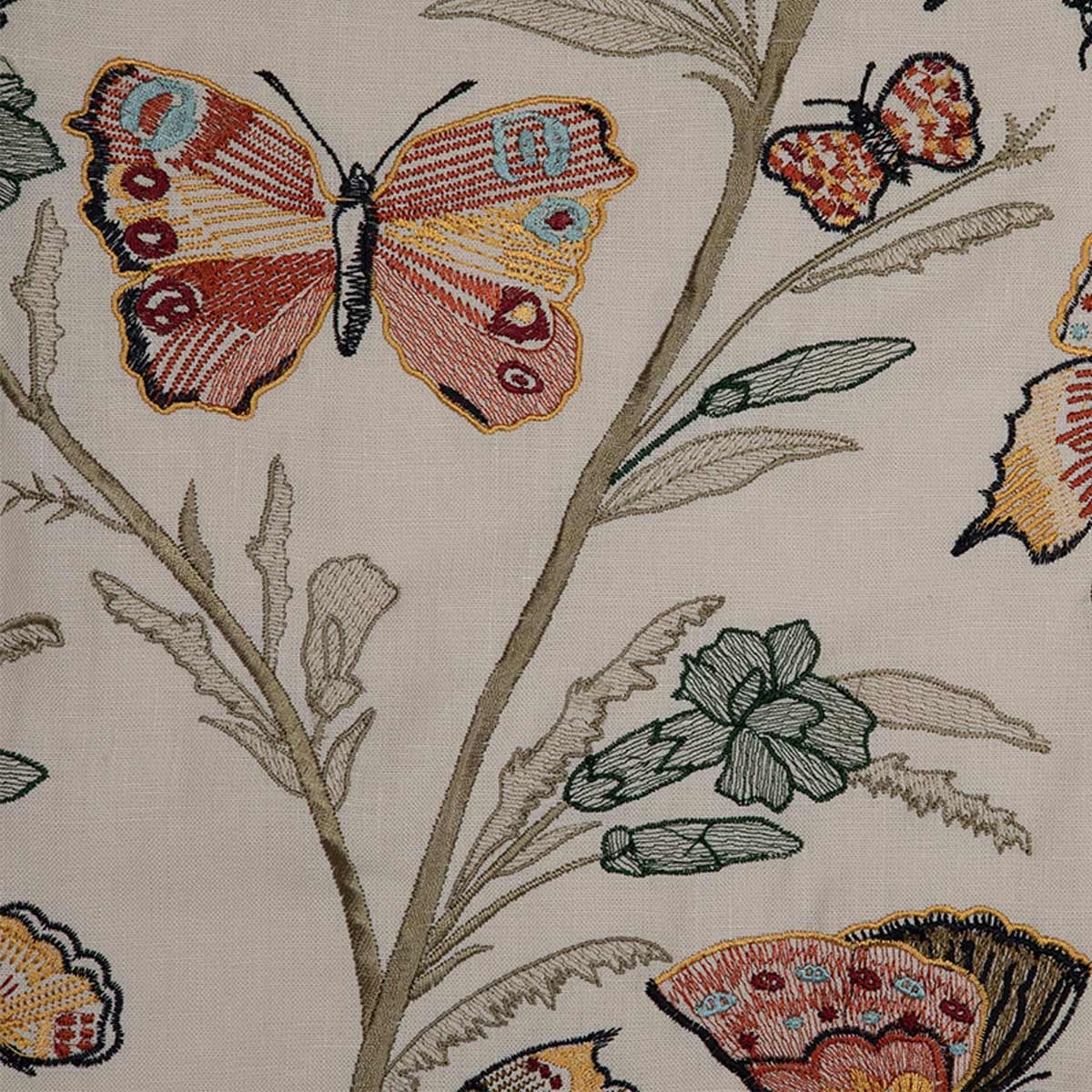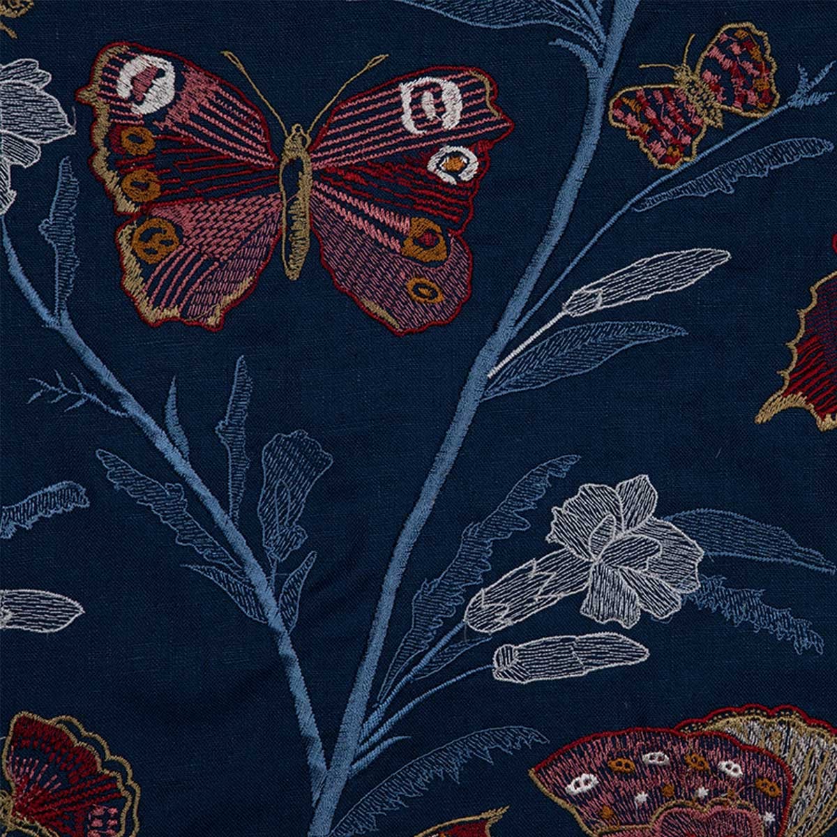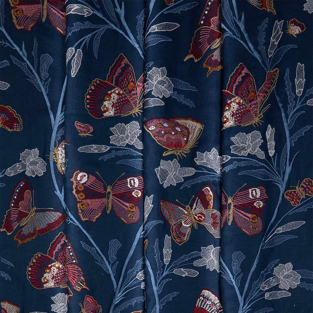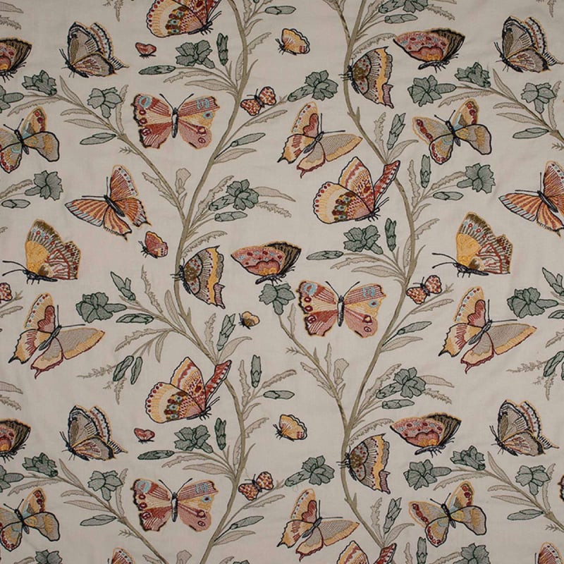 Flânerie, par la Maison Quenin, invite à une déambulation poétique à travers un jardin enchanté. Sa broderie délicate, où fleurs et papillons s'entrelacent dans une danse gracieuse, évoque l'effervescence d'une nature en plein éveil. Chaque point, minutieusement réalisé, donne aux papillons colorés une vivacité captivante. Essentiellement composé de lin, ce tissu offre une texture généreuse et un tombé ample.