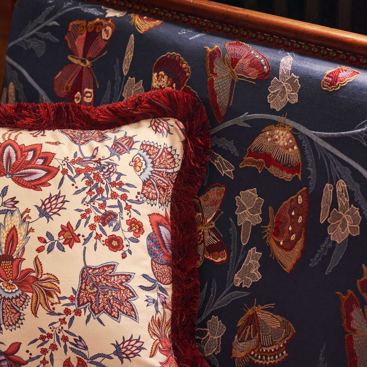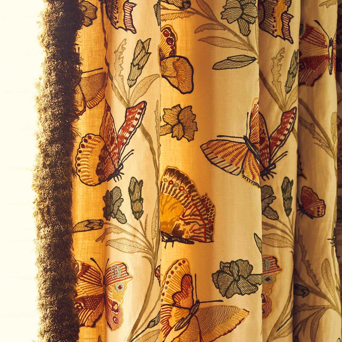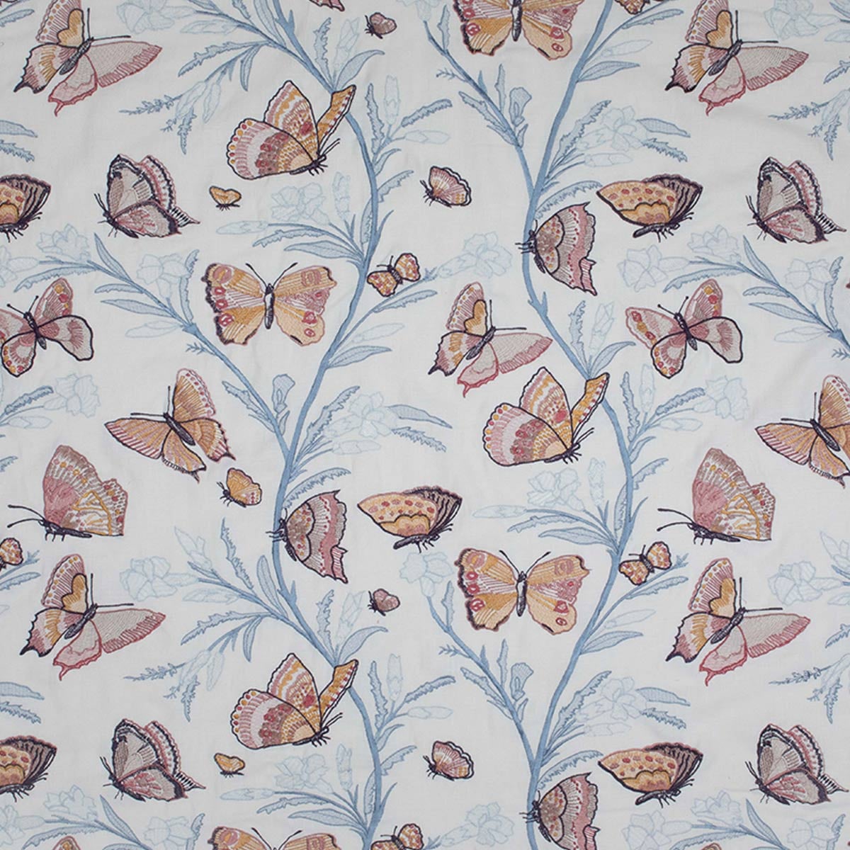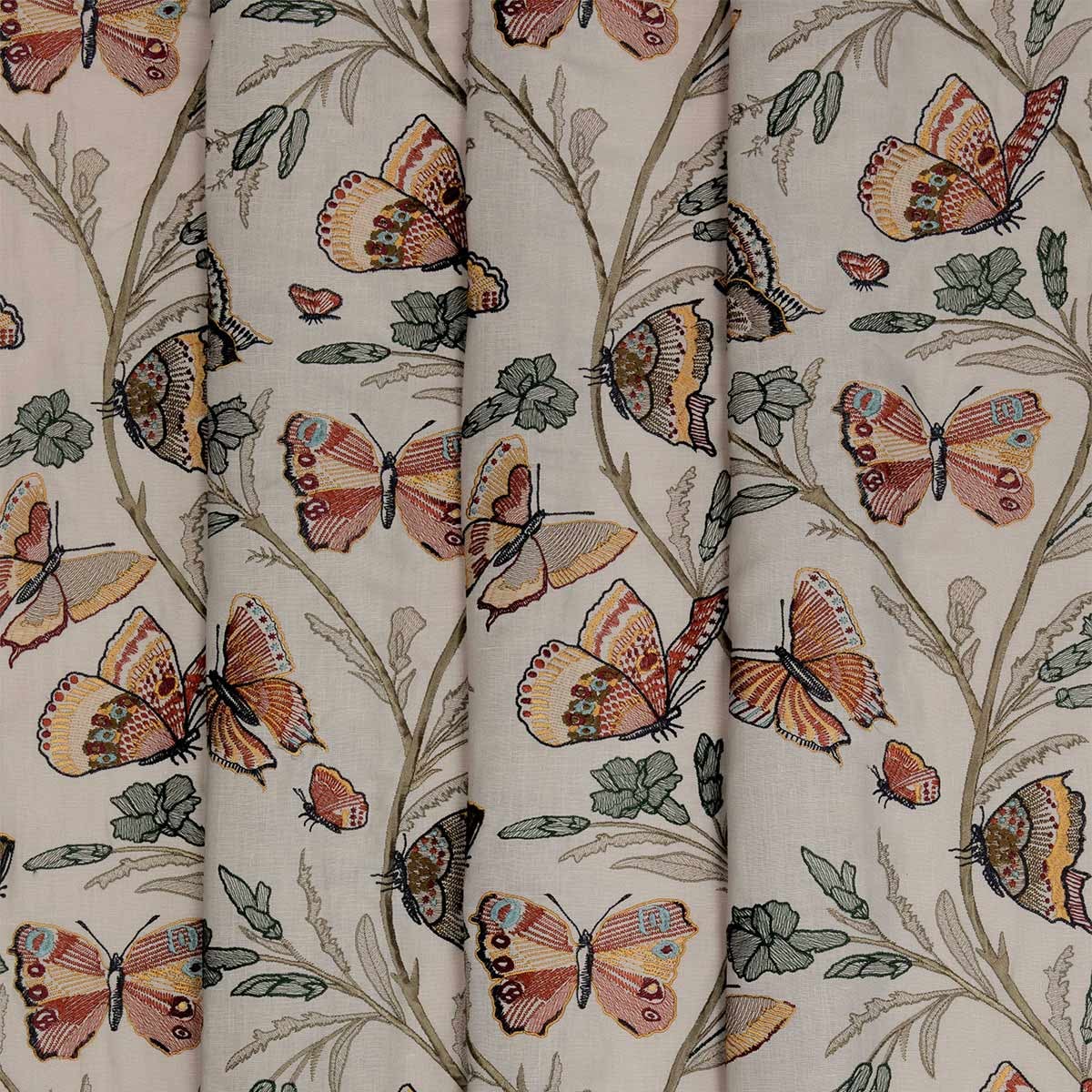 Flânerie, par la Maison Quenin, invite à une déambulation poétique à travers un jardin enchanté. Sa broderie délicate, où fleurs et papillons s'entrelacent dans une danse gracieuse, évoque l'effervescence d'une nature en plein éveil. Chaque point, minutieusement réalisé, donne aux papillons colorés une vivacité captivante. Essentiellement composé de lin, ce tissu offre une texture généreuse et un tombé ample.
