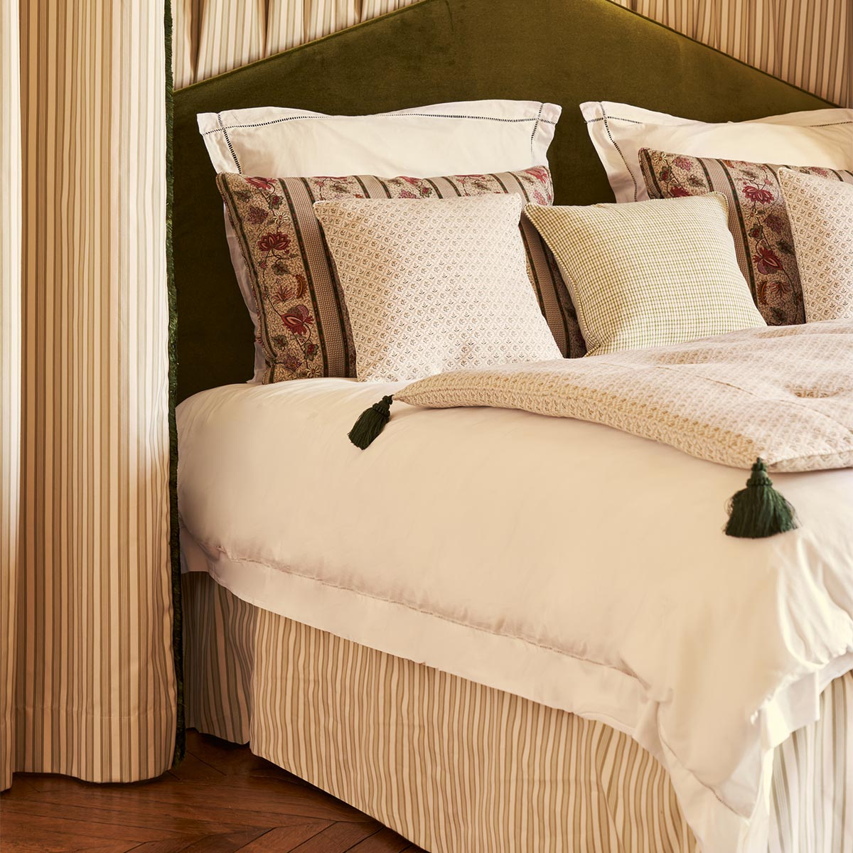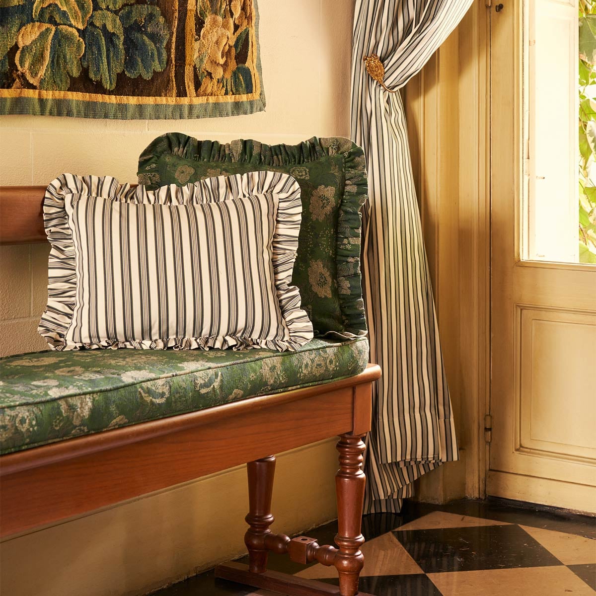 Une création de la maison Quenin, le tissu Houlgate révèle une danse subtile de lignes et de couleurs. Ses rayures tricolores dessinent des chemins imaginaires, invitant l'esprit à vagabonder dans un paysage harmonieux. Réalisé entièrement en coton, son toucher velouté évoque la caresse d'une brise légère. Avec ses teintes franches, ce jacquard s’harmonise aisément avec tout type de décor.