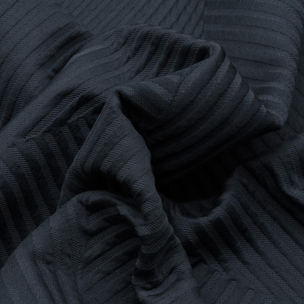 À travers Saline, un tissu à grande laize, Nobilis revisite le piqué de coton avec une technique de tissage avancée. Le modèle arbore d'épaisses cannelures qui, au lieu de suivre la traditionnelle ligne droite, prennent des chemins en zigzag. Ces différentes trajectoires, lumineuses et embossées, sont soulignées par la fluidité du tombé. Elles dessinent un harmonieux mouvement d’ensemble, à l’effet dynamique et contemporain.