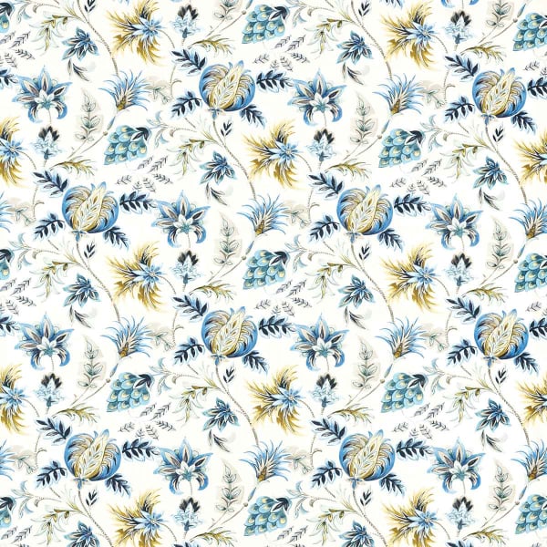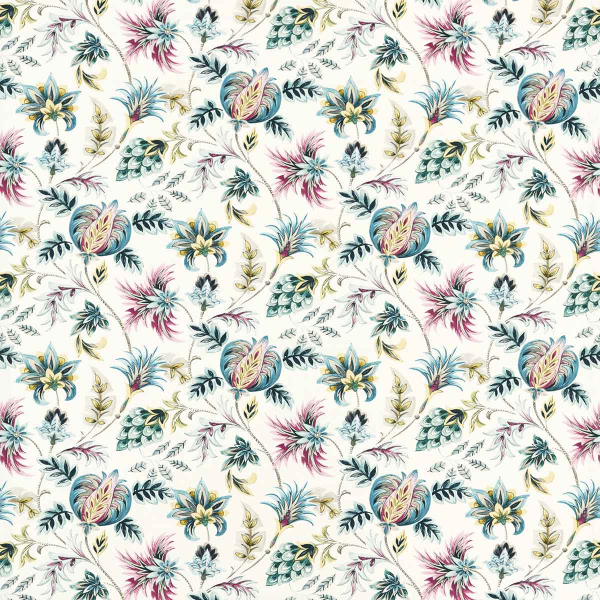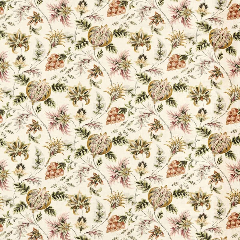 Sizergh de Clarke & Clarke porte le nom d’un château situé dans le comté anglais de Cumbria. Il est la résidence de la famille Strickland pendant 750 ans, ruinée pour avoir soutenu le roi Jacobus ou Jacques II. Le tissu évoque cette cause avec un motif floral exotique typiquement jacobéen. Les fleurs, digitalement imprimées sur du coton doux, séduisent par leur graphisme aux couleurs vibrantes.