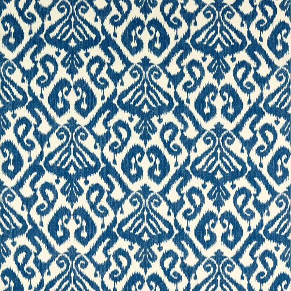 Le tissu Kasuri Outdoor de la maison Sanderson affiche un style original, issu de l’héritage vestimentaire ouzbek adras. Telles de vitraux animés, des arabesques vibrantes forment une chorégraphie de losanges, délicatement disposés sur cette étoffe. L’effet flou dynamique, en harmonie avec les figures de couleurs vives, invite à la contemplation.