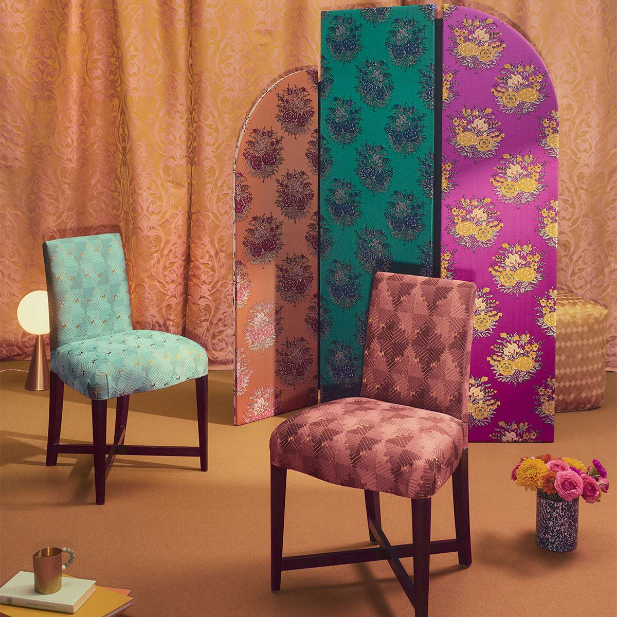 Le tissu Block Print ensorcelle par un design floral imprégné d'inspirations indiennes. Des bouquets de fleurs aux détails opulents s'épanouissent sur un fond de couleur audacieuse, empruntant une texture artisanale délicate. Dans un élan de tradition, Rubelli façonne cette étoffe avec un esprit vintage, mêlant harmonieusement des teintes profondes et chaleureuses.