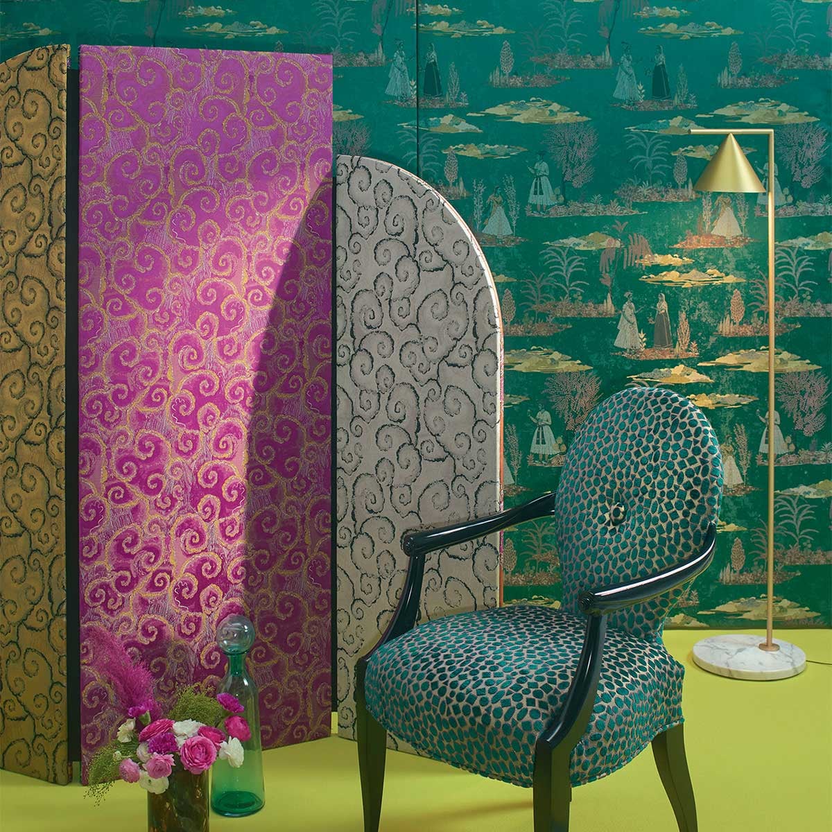 Le tissu Monsoon emporte l’esprit vers des horizons lointains où seuls les rêves imposent leurs limites. Ce jacquard en relief de Rubelli évoque la mousson, où les nuages et la pluie tourmentent le firmament. Cette pièce enveloppe l’intérieur d’une aura de fantaisie héritée d’une miniature mongole.