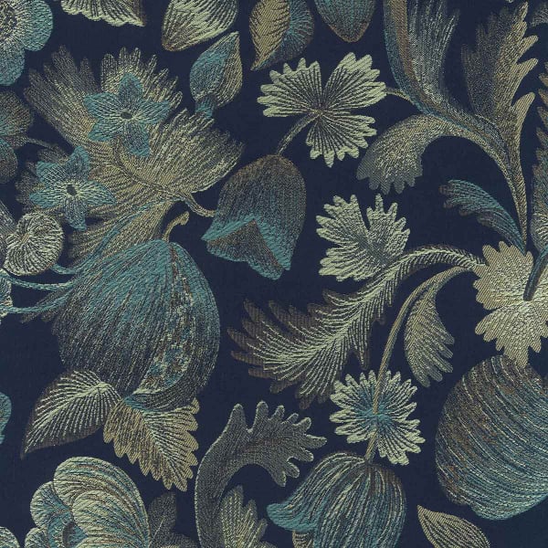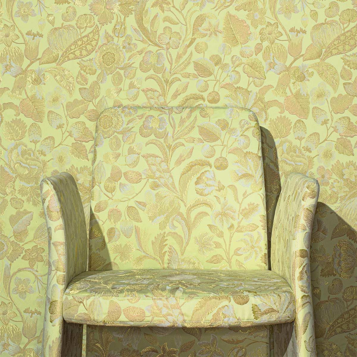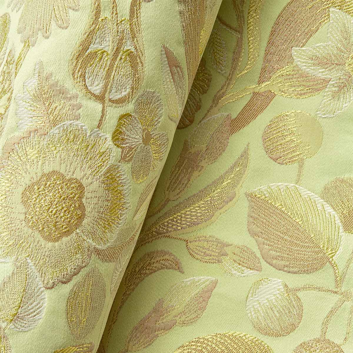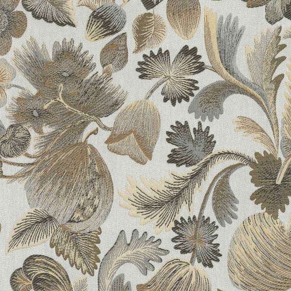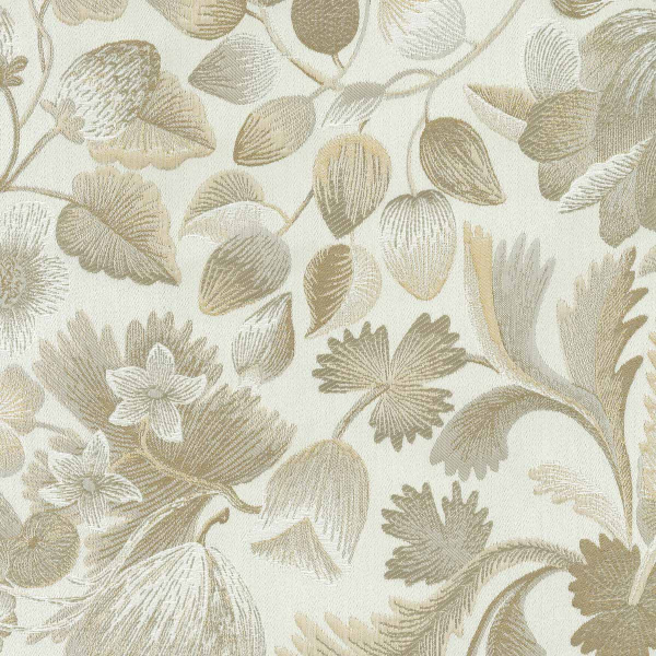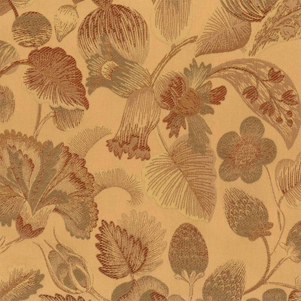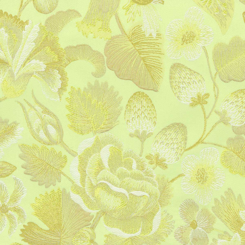 Tissu lampas majoritairement composé de fibres naturelles, Royal Botanica honore la beauté de l’art ancien de la broderie. Cette étoffe provient d’une sélection baroque d’une chasuble du XVIIIe, soigneusement préservée dans les archives de Rubelli. Fraises et noisettes enrichissent son motif floral aux tons métalliques.