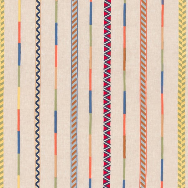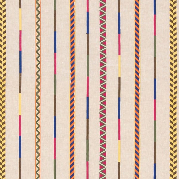 Le tissu Backdrop de GP & J Baker est un tissu de la collection Kit Kemp & Embroideries. Ce modèle présente des bandes verticales aux motifs géométriques répétitifs. Ses rayures colorées et richement décorées embellissent l’intérieur avec une note sophistiquée.