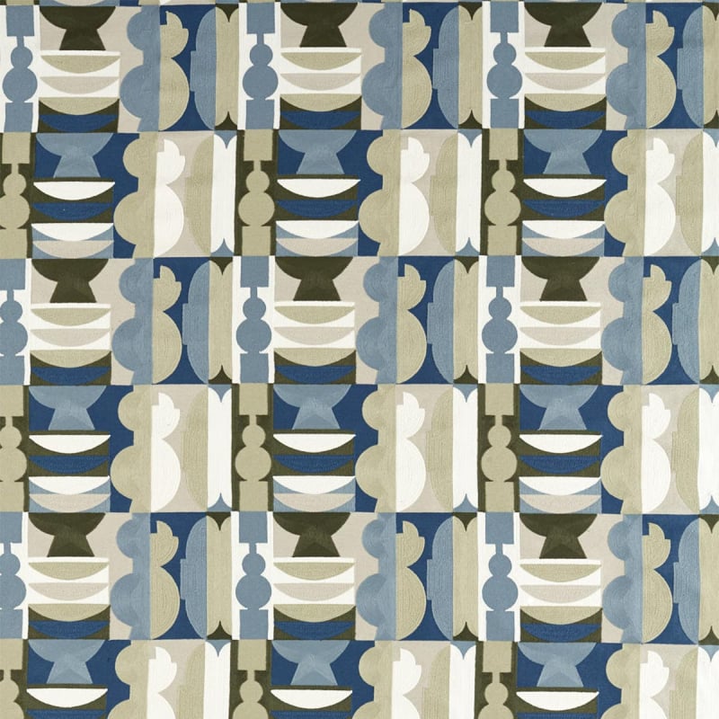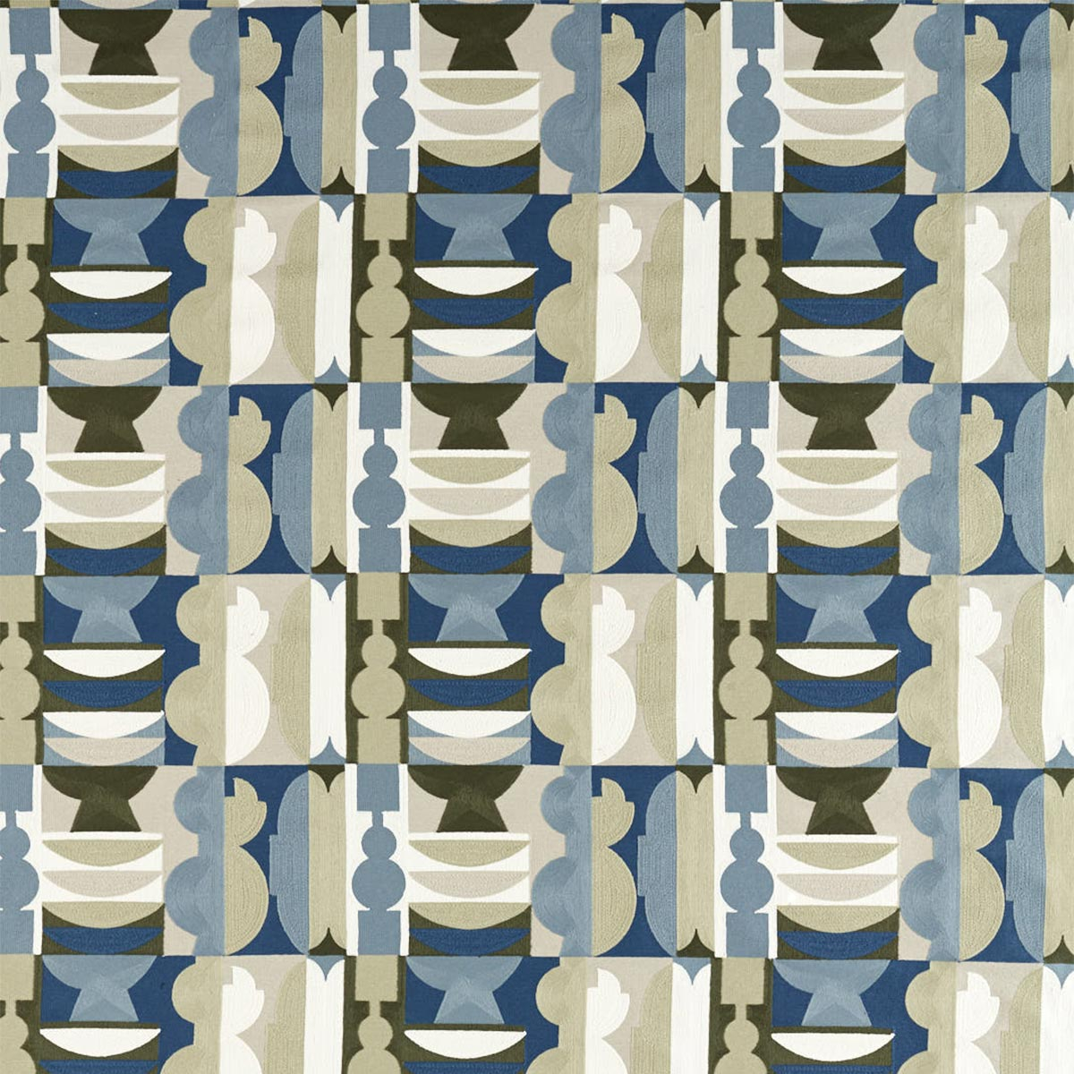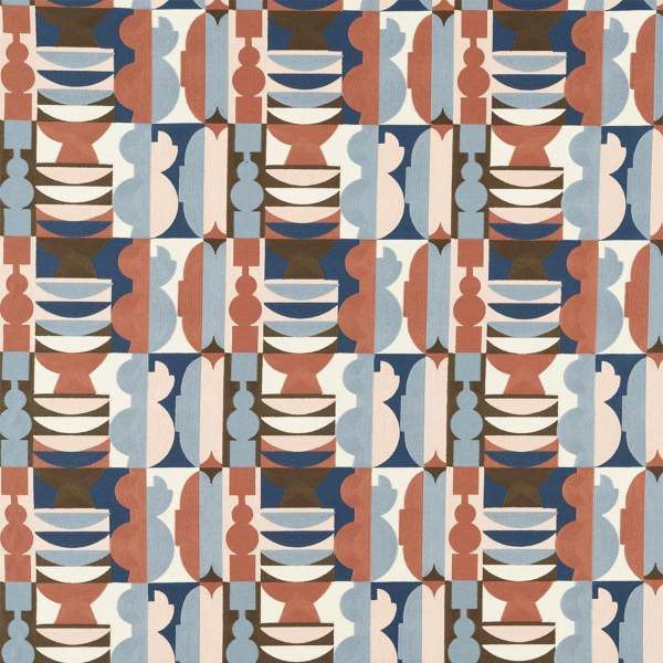 Potshop de Harlequin est un tissu dense en coton brodé. Il séduit par l'esprit artisanal de son motif. Inspiré des étagères de l’atelier du céramiste Henry Holland, il illustre une broderie minutieuse d’assiettes, de coupes et de lampes en argile empilées les unes sur les autres. Elles évoquent la nature à travers leur palette terreuse, et rendent l’ambiance plus conviviale.