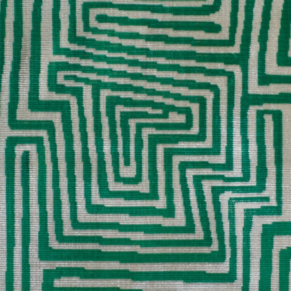 Labyrinthe aux inspirations cubistes, le velours jacquard Jamu Jungle révèle des palettes bicolores rappelant des pelages d'animaux sauvages et d'oiseaux tropicaux. Cette création géométrique habille les espaces et les éléments de décors d'une audacieuse touche rétro.