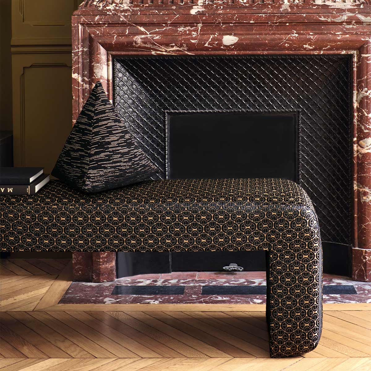 Inspiré d’un architecte italien dont il tient le nom, le velours jacquard Serlio séduit par l’effet de treillis de ses arcs de triomphe entrelacés. Les arcades, groupées par quatre, sont symétriques et embossées. Leur espacement dessine une forme hexagonale, accentuée par la couleur contrastante du fond. Ce jeu d’optique sophistiqué témoigne du savoir-faire de Casamance, et éveille les intérieurs avec sa luminosité.