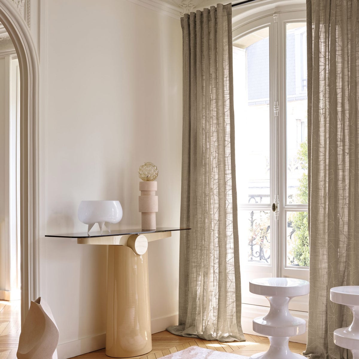 Le tissu Elu Recycle de Casamance se révèle dans une danse de formes géométriques éthérées, esquissées par des lignes subtiles. Le tracé est réalisé au point de riz, une broderie inspirée de la finesse d’une technique nippone ancestrale. Dans des teintes neutres, ce textile léger murmure la beauté du minimalisme.