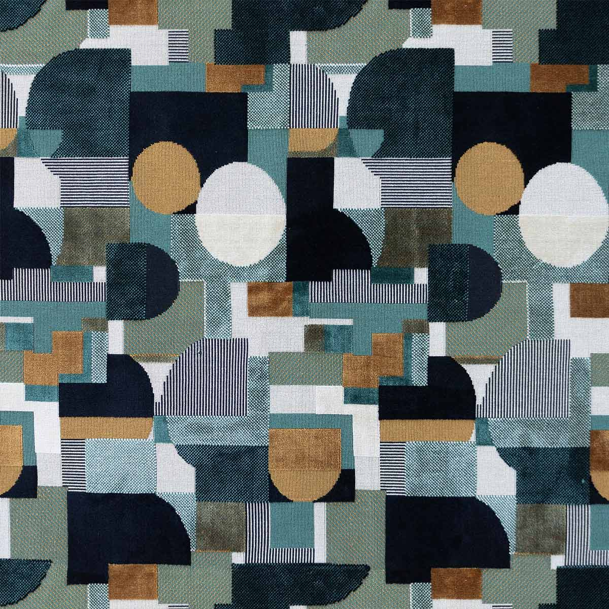 L’abstraction géométrique resplendit de mille feux sur le tissu Marés de Gastón y Daniela. Ses rectangles, carrés, cercles et autres figures se déploient dans une chorégraphie spontanée et hypnotique. Ce design contemporain, au caractère structuré, sublime les intérieurs avec une touche graphique et moderne.