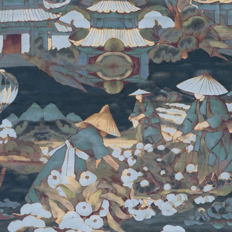 Tembo, une création de Lorenzo Castillo pour Gastón y Daniela, capture l'essence des traditions asiatiques avec un motif riche et poétique. Inspiré de paysages paisibles, il met en scène des pagodes, des barques et une végétation luxuriante. Composé de coton et de lin, ce tissu dorlote la peau de ses fibres délicates.