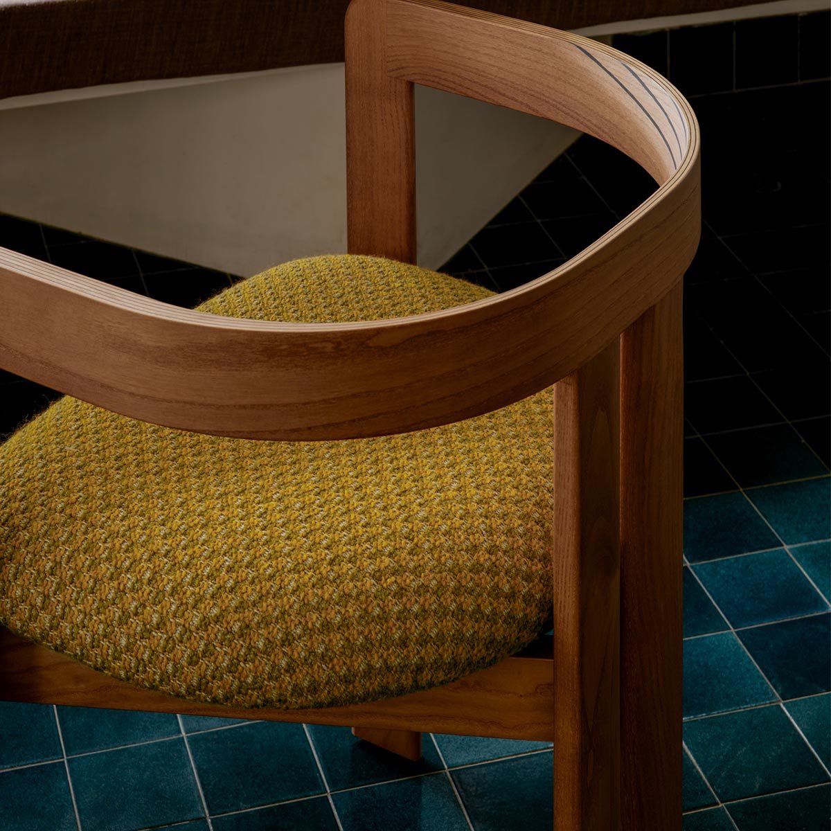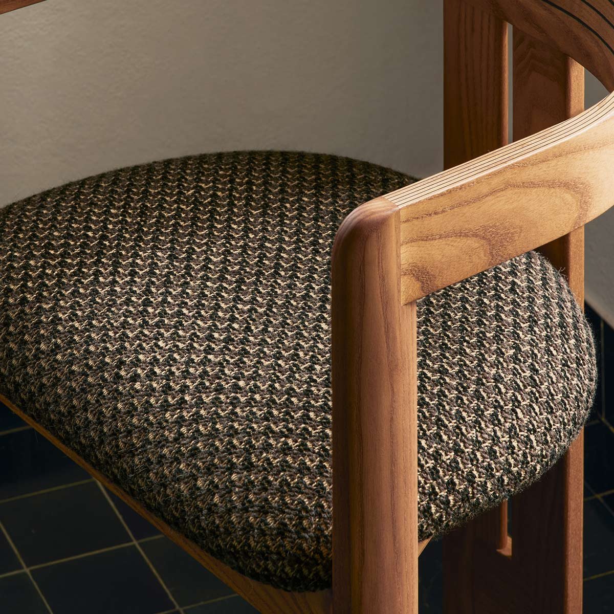 Le tissu Dune fascine par ses petites figures géométriques qui enrichissent sa texture. Cette pièce résulte d’un tissage à la main à l’aide d’une trame en mélange-laine et d’une chaîne en jute. Au-delà de l’ornement, elle témoigne de l’engagement de Dominique Kieffer envers la préservation de l’environnement.