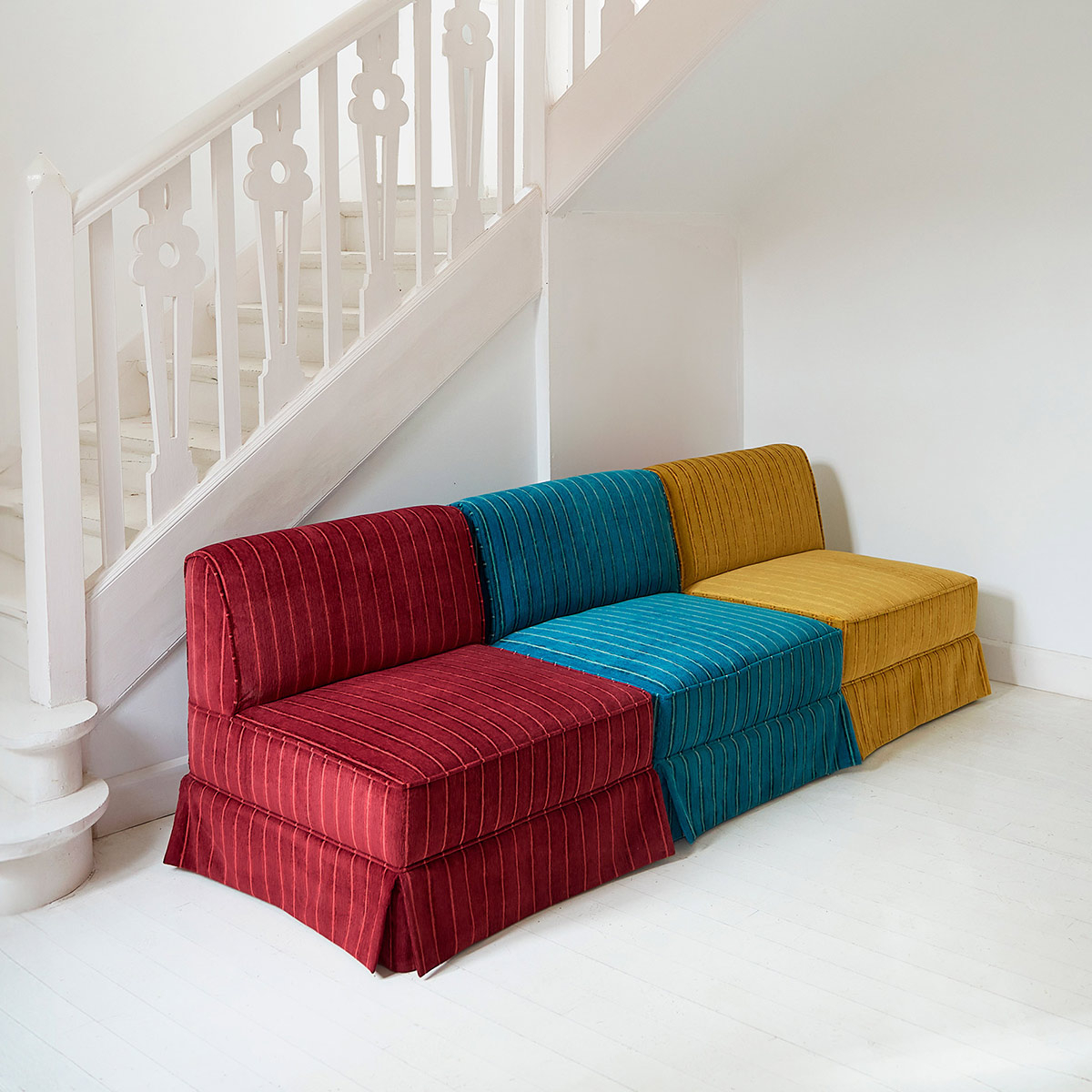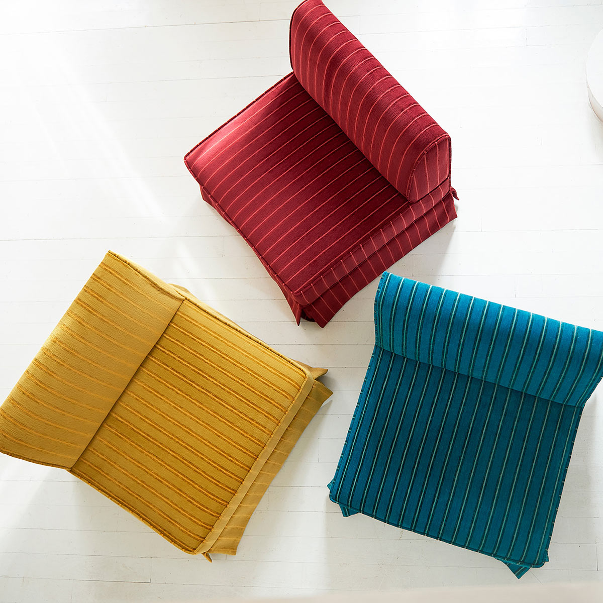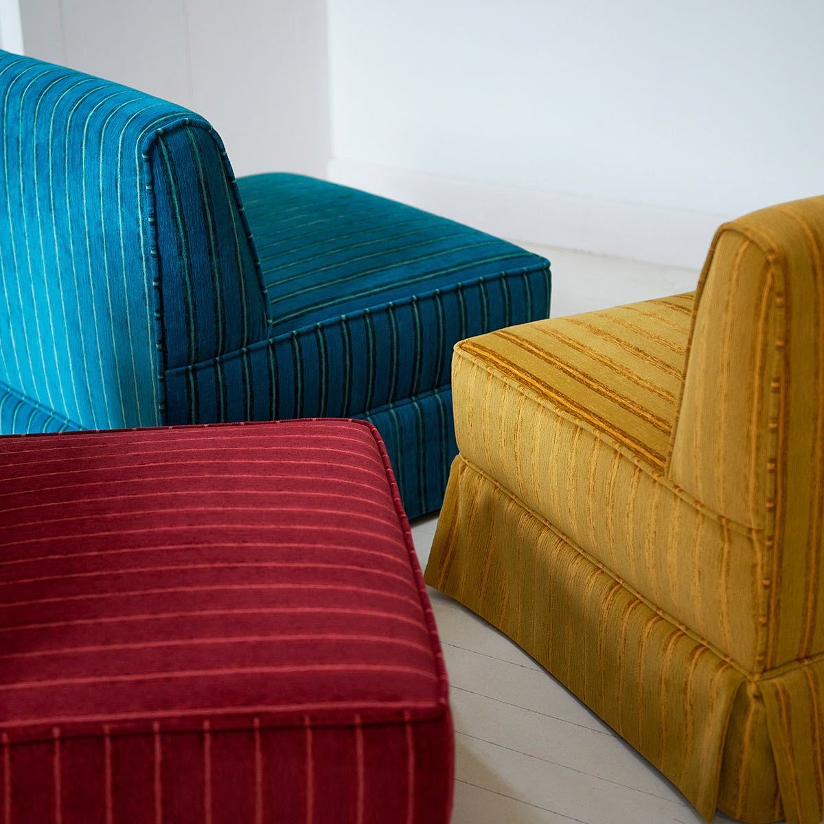 Eólida , un tissu chenille de Gastón y Daniela, surprend par ses rayures subtiles et raffinées. Sa texture veloutée dorlote la peau, invitant la main à explorer ses richesses. Cette étoffe se révèle dans des nuances sourdes et profondes, imprégnant l’espace d’une ambiance feutrée.
