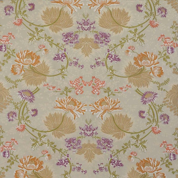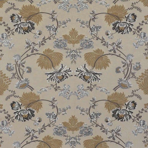 Fontainebleau est un lampas à motif floral, créé par Verel de Belval. Les tiges végétales sinueuses dessinent une composition élégante sur un fond damassé, ajoutant profondeur et raffinement. Majoritairement réalisée en fibres naturelles, cette étoffe allie douceur et brillance subtile. Les fils métalliques délicatement incorporés apportent une touche sophistiquée aux décors.