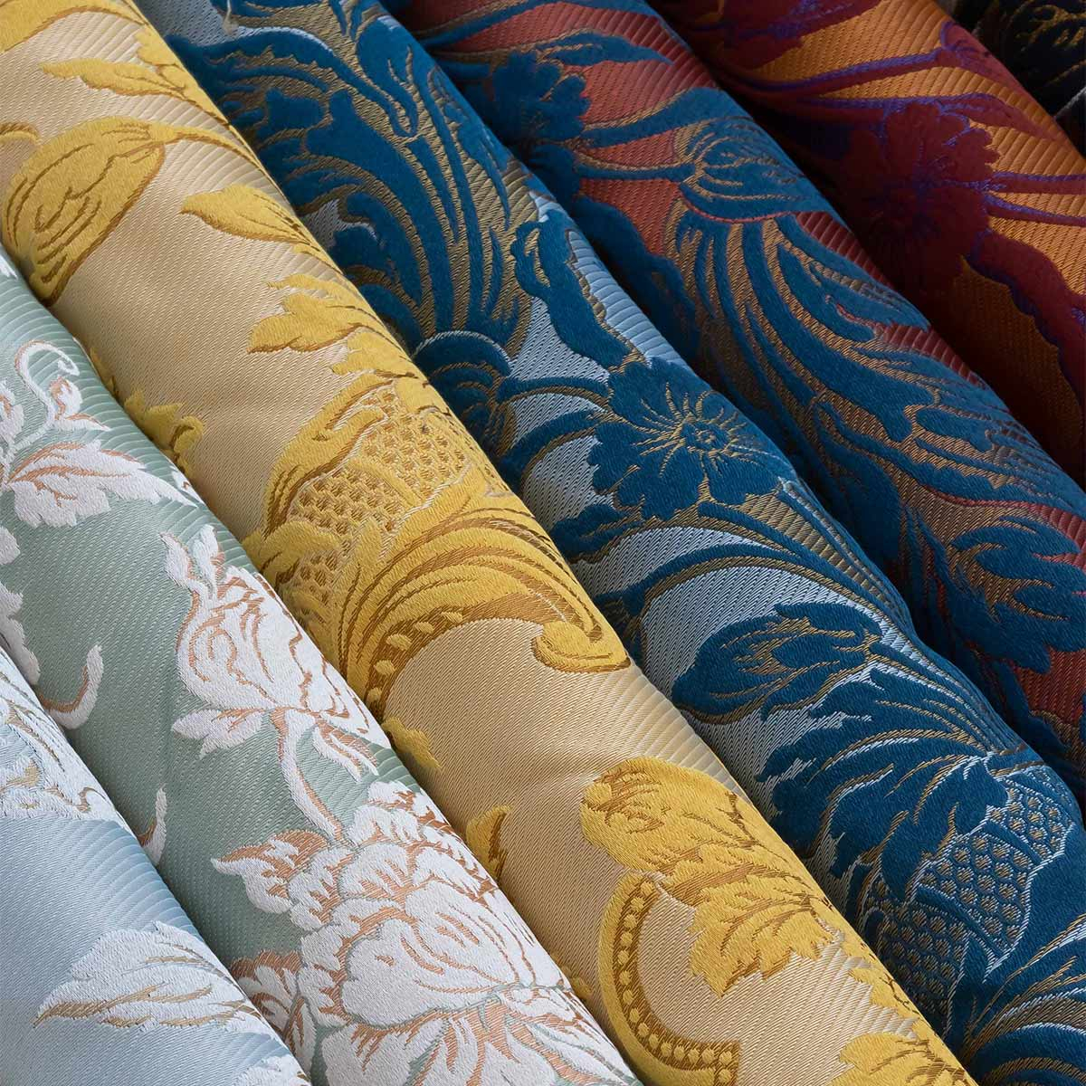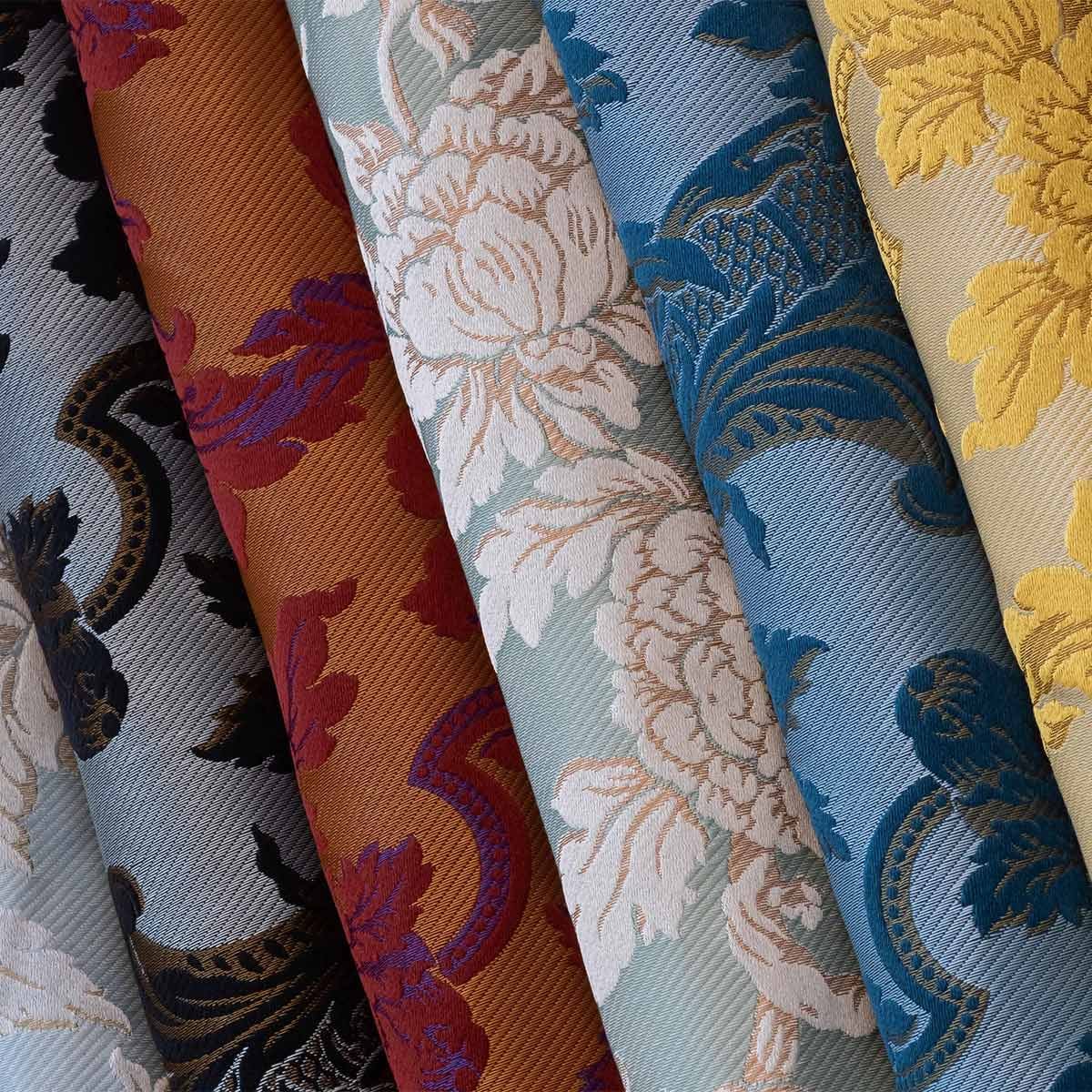 Verel de Belval présente Frivole, une brocatelle inspirée de l'élégance du style Louis XV. Son motif floral met en scène des pivoines, tulipes et roses dans une composition réaliste. Tissée avec deux chaînes superposées, cette étoffe dévoile un relief subtil avec des effets satinés. Le tout se repose sur un fond au rendu mat et délicat.