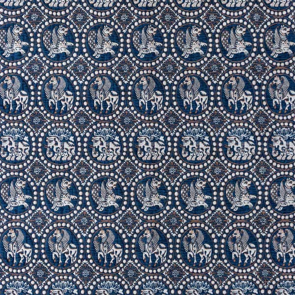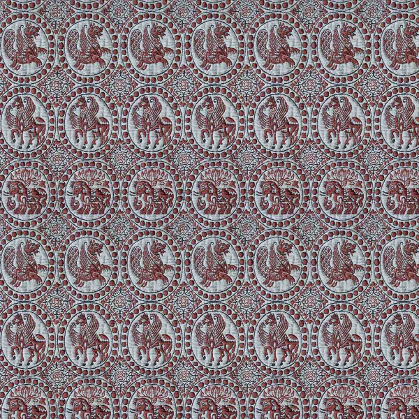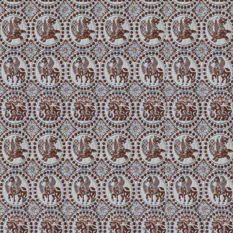 Le tissu Meridio, cocréé par Gastón Y Daniela et l’architecte Lorenzo Castillo, rehausse les espaces d’un charme hispano-arabe. Il arbore des chevaux et des dragons ailés aux traits héraldiques, inspirés d’un document européen datant du XIe siècle. Les figures, réalisées avec des fils bouclettes, séduisent par leur toucher duveteux. Elles apportent une touche médiévale aux intérieurs, outre leur attrait tactile.