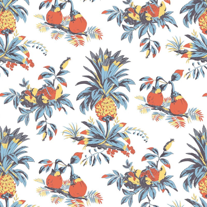 Gaston Y Daniela revisite les imprimés classiques des cotonnades d’antan avec le tissu Juliana. Il arbore un motif exotique dessiné par Lorenzo Castillo, où les cases d’un treillis de bambous encadrent des ananas. Le textile séduit par l’effet dépaysant de ses figures, outre son charme d’époque accentué par l’authenticité du coton et du lin.