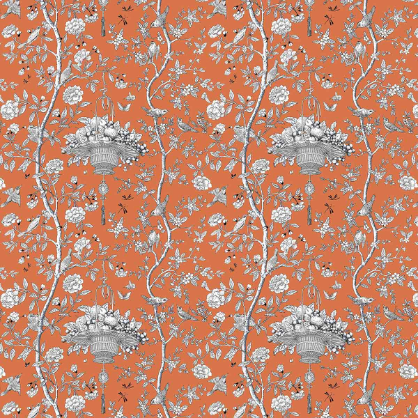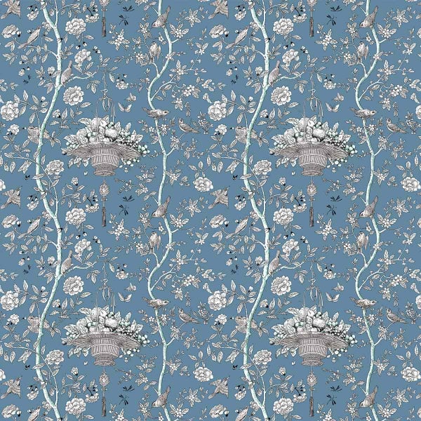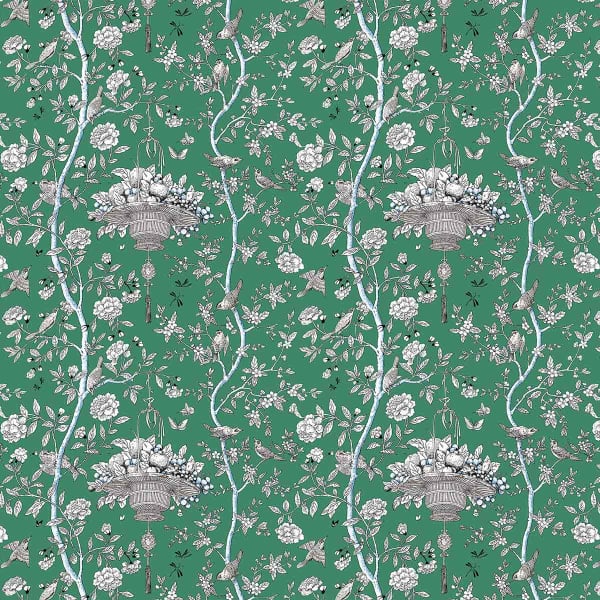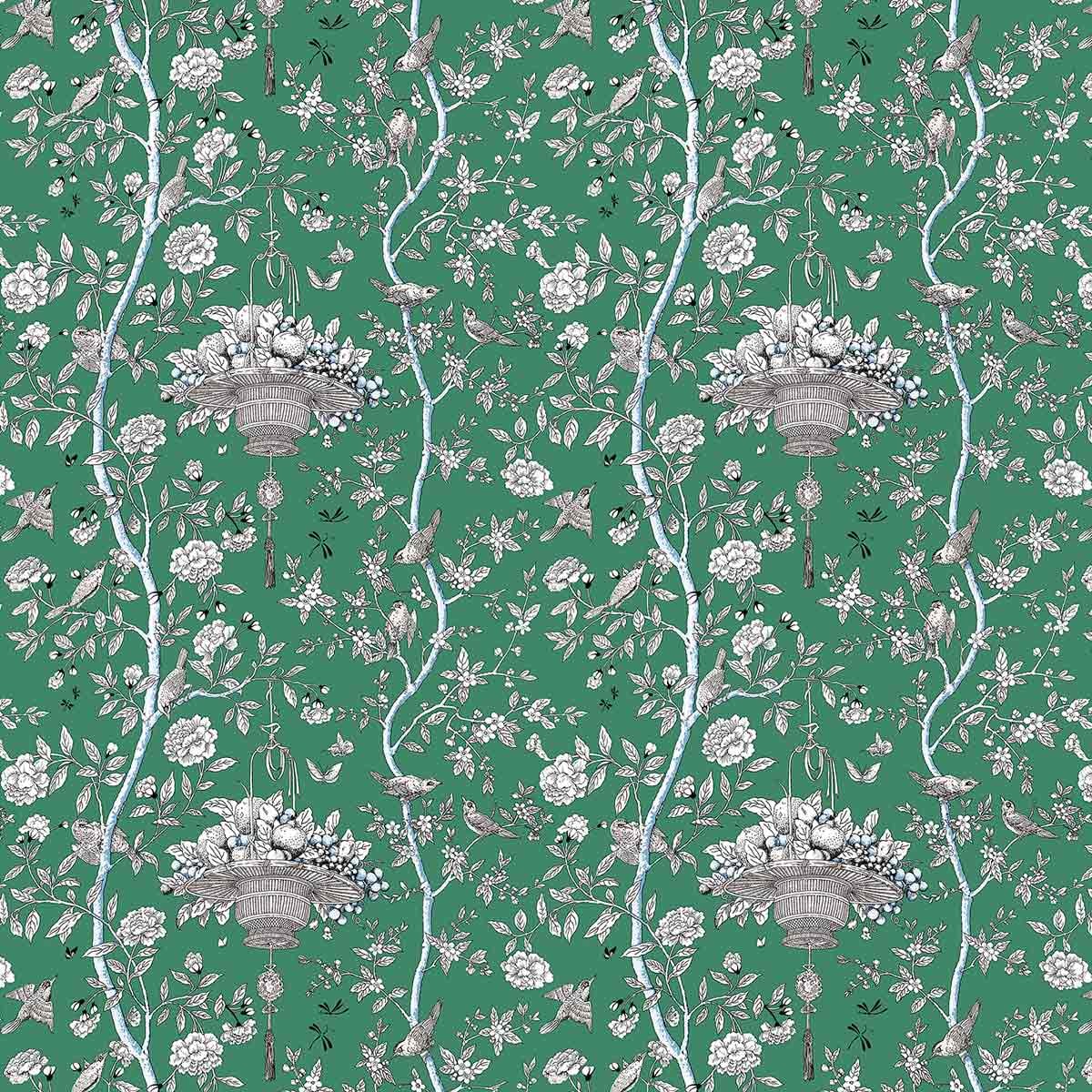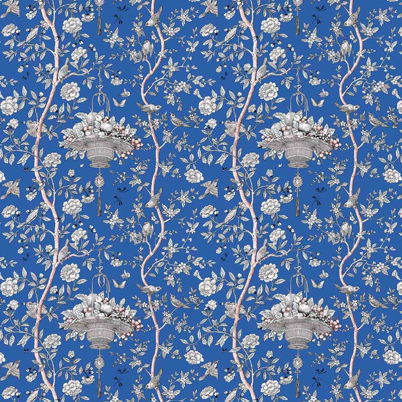 La gaieté du printemps s’invite dans les intérieurs avec le tissu Roger, un modèle Gaston Y Daniela en coton et lin imprimé. Les figures, dessinées par Lorenzo Castillo, illustrent des paniers de fruits suspendus entre les branches fleuries, où des petits oiseaux animent la scène avec leurs chants et parades. Le motif séduit par la légèreté de sa palette monochrome, outre son charme oriental qui rafraîchit les espaces.