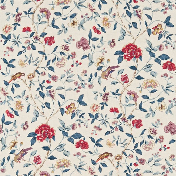 Le tissu Sissinghurst de Sanderson dévoile un motif botanique d’inspiration historique. Tiré des archives Warner, ce dessin revisite l'élégance intemporelle d’un chintz glacé. Des oiseaux exotiques s’installent délicatement sur des branches ondulantes, agrémentées de pivoines multicolores. Alliant une esthétique traditionnelle à un style moderne, cette création apporte une note raffinée aux intérieurs.