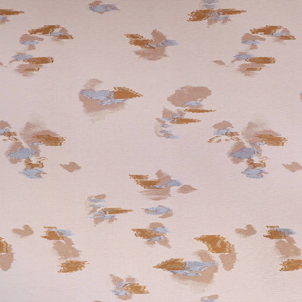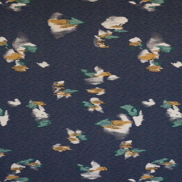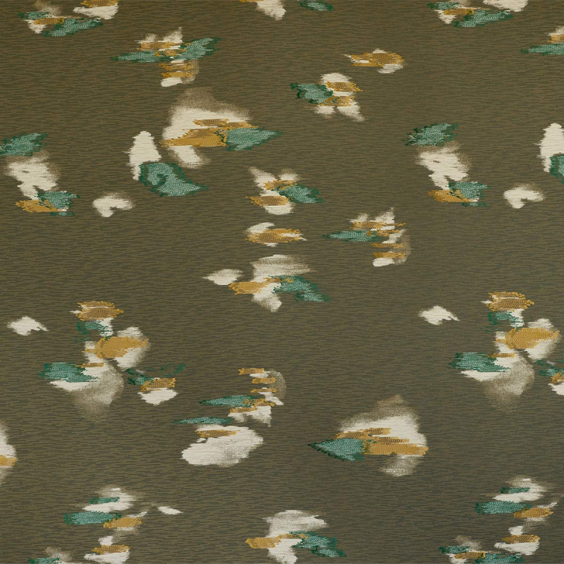 Verel de Belval propose Escale, une étoffe qui s'inspire des paysages d'Extrême-Orient avec des paravents en laque. Son motif indéfini montre tantôt des nénuphars, tantôt un reflet de nuages sur une eau miroitante. La technique de fil coupé procure un aspect brodé main, rappelant les tissages brochés d’antan.