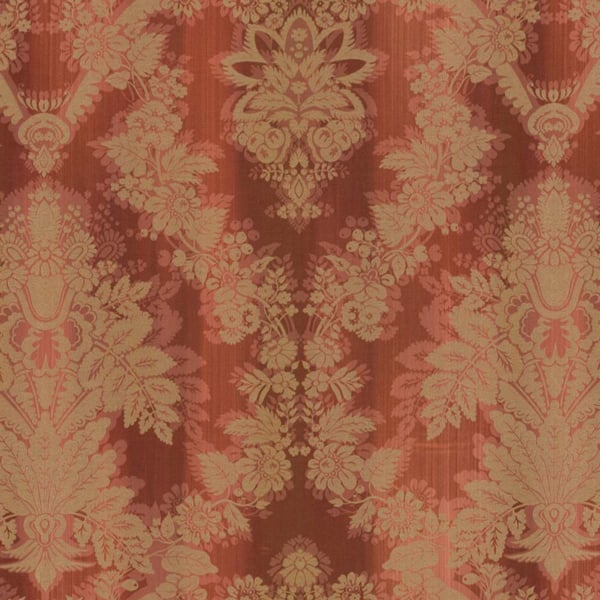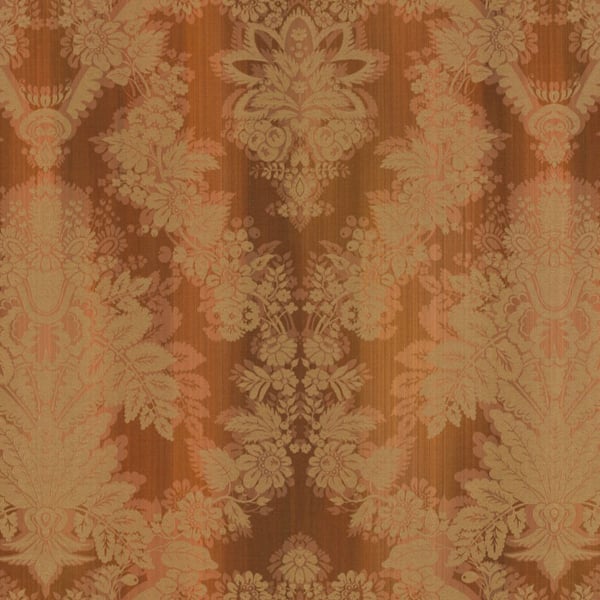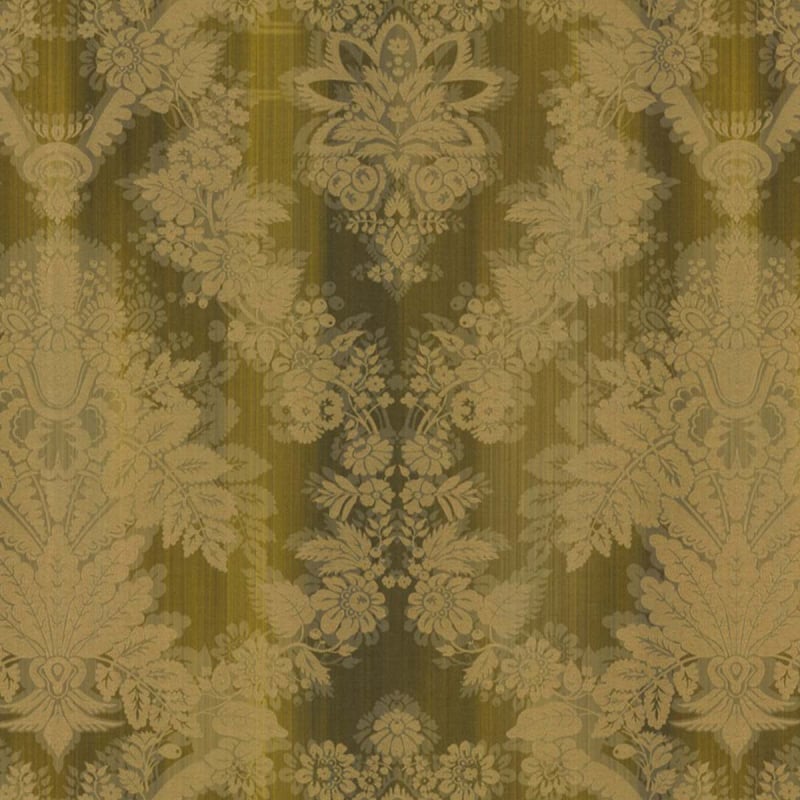 Avec le tissu jacquard Foscarini, Nobilis propose un somptueux motif floral inspiré du damassé. Les figures font vibrer les intérieurs avec leurs reflets métallisés, où la brillance de la viscose sublime la teinte mordorée. Les fleurs contrastent harmonieusement avec le fond mat en lin flammé, strié de fines cannelures verticales  pour accentuer le jeu de texture.