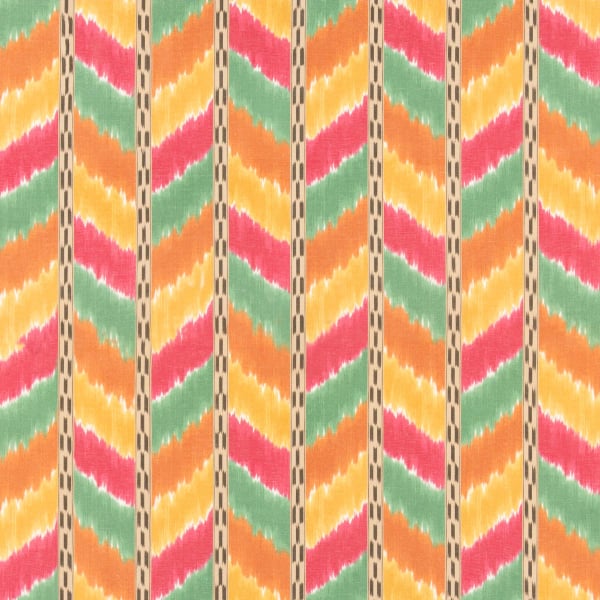 Imaginé par GP&J Baker, le tissu Ottoline est un tissu inspiré de la route de la soie. Il revigore l’intérieur avec les couleurs de l’été, où le coton emprunte sa souplesse au lin flammé. Le motif à chevrons semble s’effacer sous l’effet du vent. De fines bandes ornées de petits rectangles magnifient l’ensemble avec équilibre.