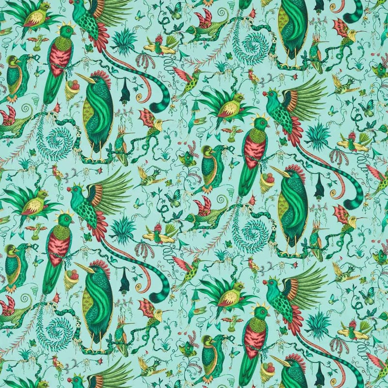 À travers le tissu Quetzal, Clarke & Clarke invite à un voyage au cœur de la forêt nuageuse enchantée du Costa Rica. Oiseaux aux ailes déployées, créatures fantastiques et végétation enchevêtrée composent un motif à la fois onirique et spectaculaire. Les détails minutieux du dessin procurent une sensation de mouvement et de profondeur, sublimant ce tissu entièrement en coton.