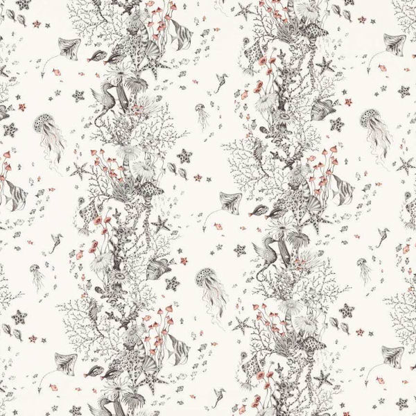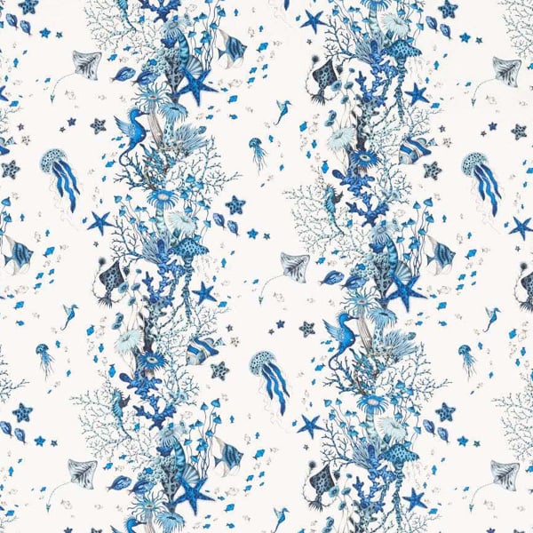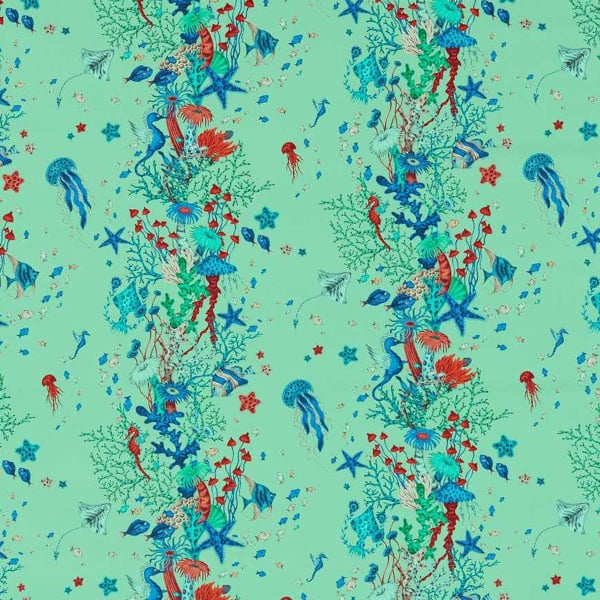 Le tissu Seaforest de Clarke & Clarke dévoile un monde fantastique sous-marin. Il s’inspire des dessins botaniques du zoologiste Ernst Haeckel et du livre 20 000 lieues sous les mers de Jules Verne. Coraux, anémones et méduses composent une faune aquatique détaillée, disposée en colonnes. Entièrement conçu en coton, ce textile insuffle une atmosphère poétique et océanique aux intérieurs.