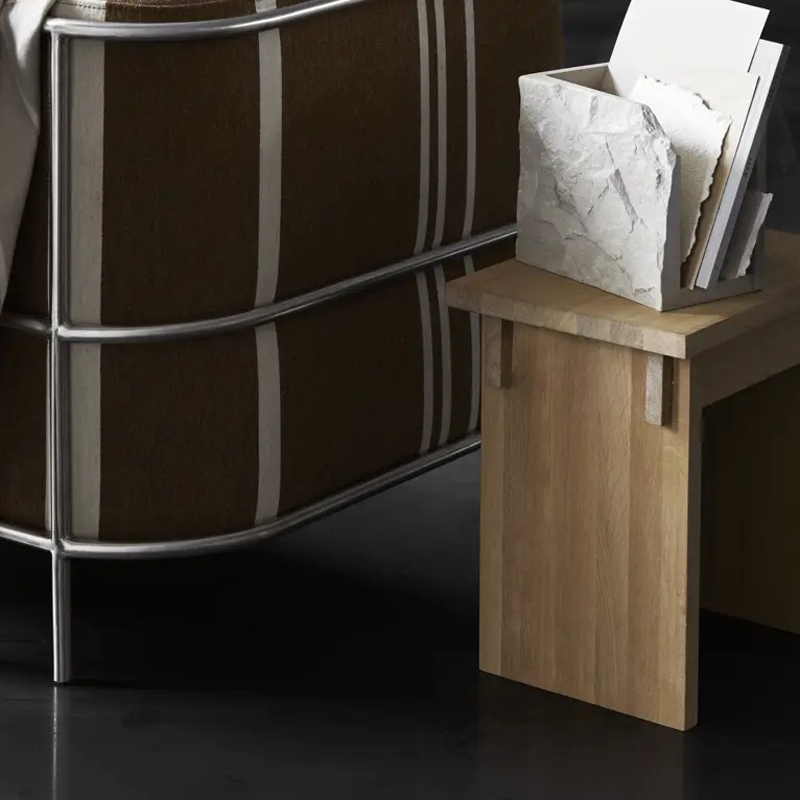Le tissu non feu Savak habille l’espace de la splendeur du style danois. Le tissage jacquard y esquisse des rayures fines et marquées dans des teintes terreuses et profondes. Créé en 1960, ce classique de Gabriel est né du mariage de coton et de laine néo-zélandaise.