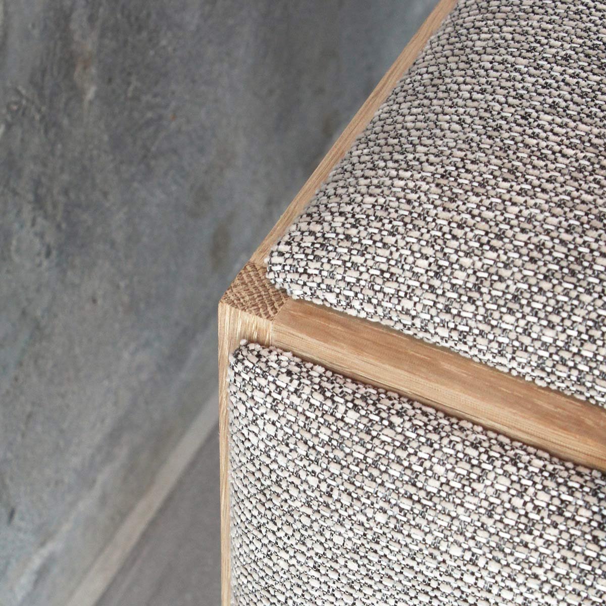 Le tissu Tempt se distingue par son tissage mêlant trois types de fils aux textures ondoyantes, qui lui confère une surface vivante, ponctuée d’irrégularités. Il évoque la délicatesse du coton tissé à la main, tout en restant robuste et fluide. Gabriel joue ici sur le contraste entre douceur perçue et résistance assumée. Son raffinement n’a d’égal que sa résilience.