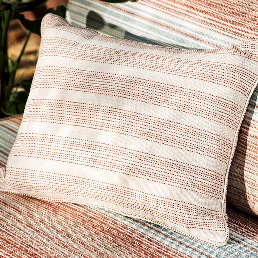 Parsemé de pointillés agencés avec précision, le tissu Ayla Outdoor affiche des rayures dynamiques aux largeurs variées. Son tissage riche en détails donne naissance à une texture singulière, jouant sur les pleins et les ajourés. Adaptée aux espaces intérieurs et extérieurs, cette toile signée Harlequin insuffle du caractère aux décors.