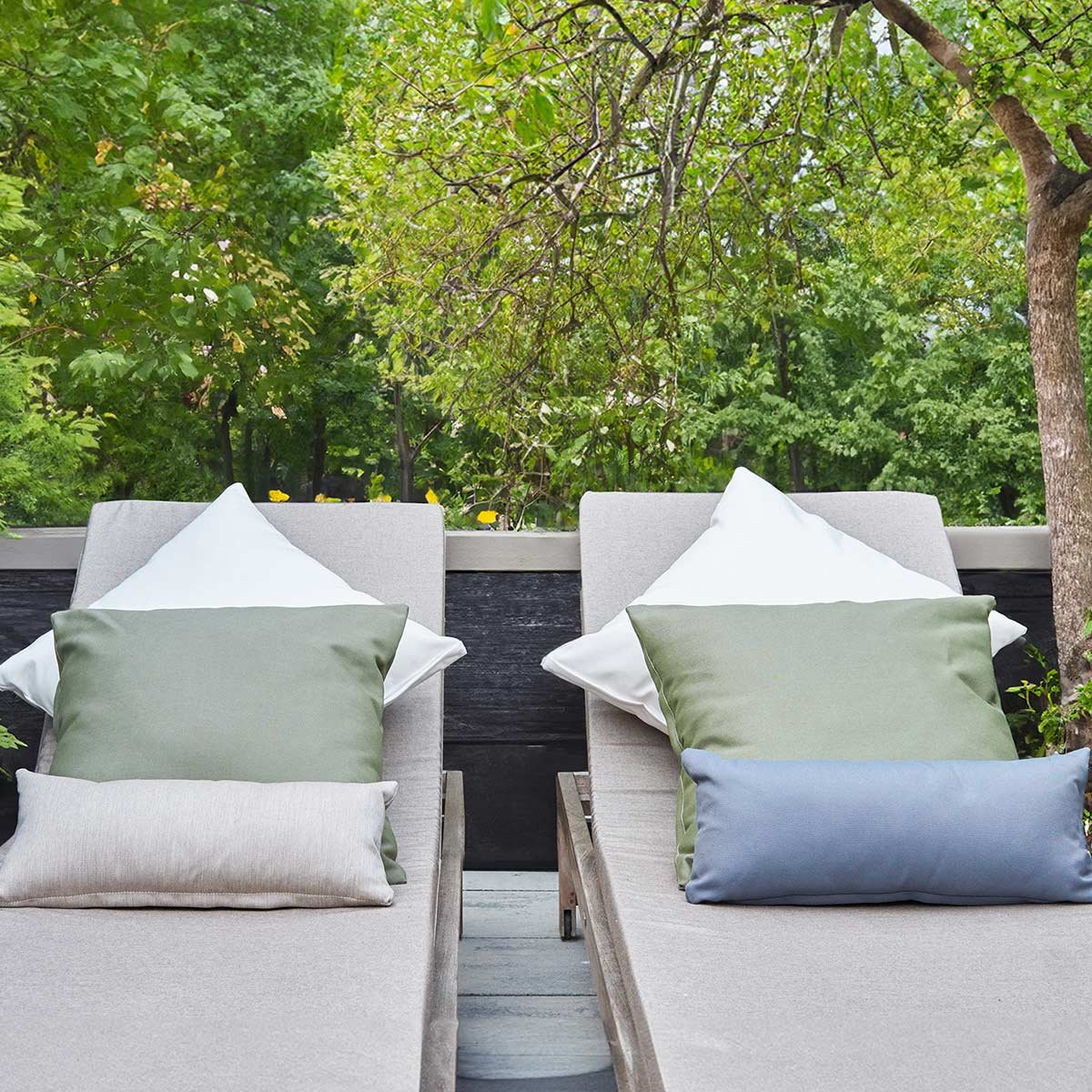 Ce tissu est spécifiquement conçu pour l'extérieur dans un matériau résistant aux intempéries et aux UV. Il peut également être utilisé en intérieur.