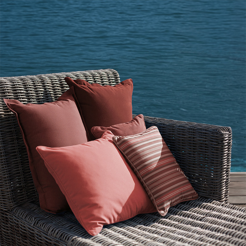 Ce tissu est spécifiquement conçu pour l'extérieur dans un matériau résistant aux intempéries et aux UV. Il peut également être utilisé en intérieur.