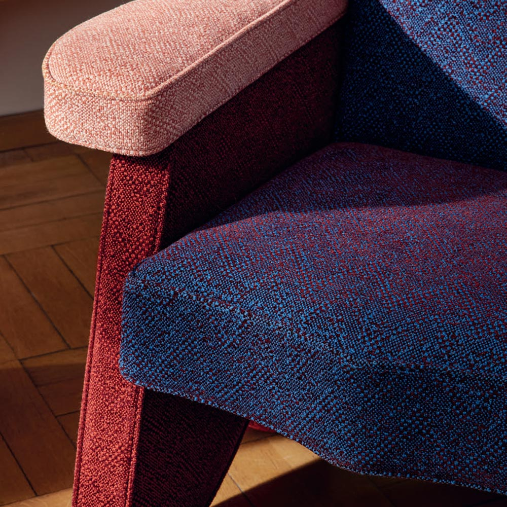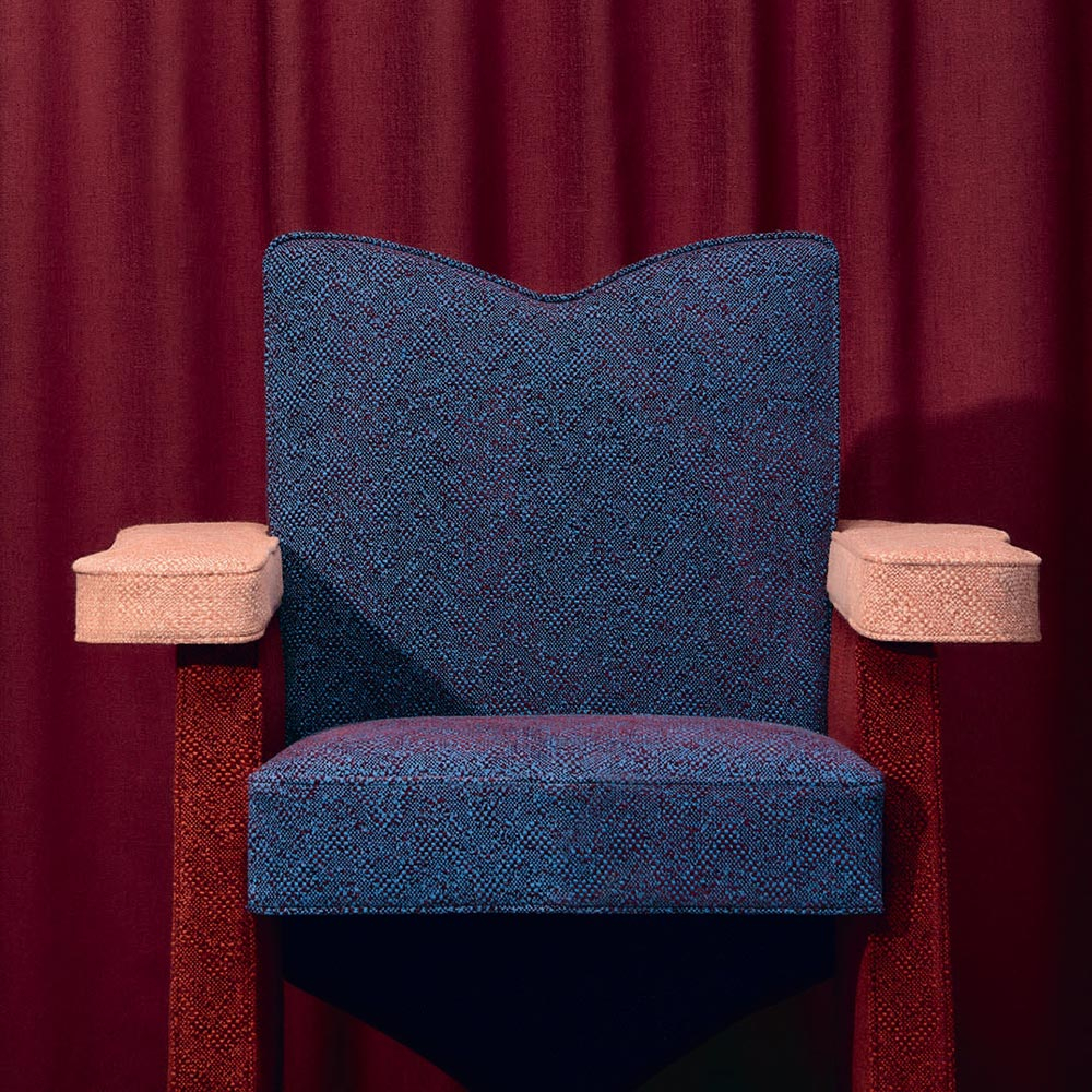 Rubelli présente Marple, un tissu qui présente un motif géométrique aux contours mouvants. Sur sa surface, les chevrons, agrandis puis rompus, esquissent une cadence irrégulière. Né du tissage jacquard, le dessin oscille entre lumière diffuse et ombre mate, révélant la matière dans ses silences. La laine néo-zélandaise, traversée par la chenille, impose sa densité et cisèle des reflets discrets.