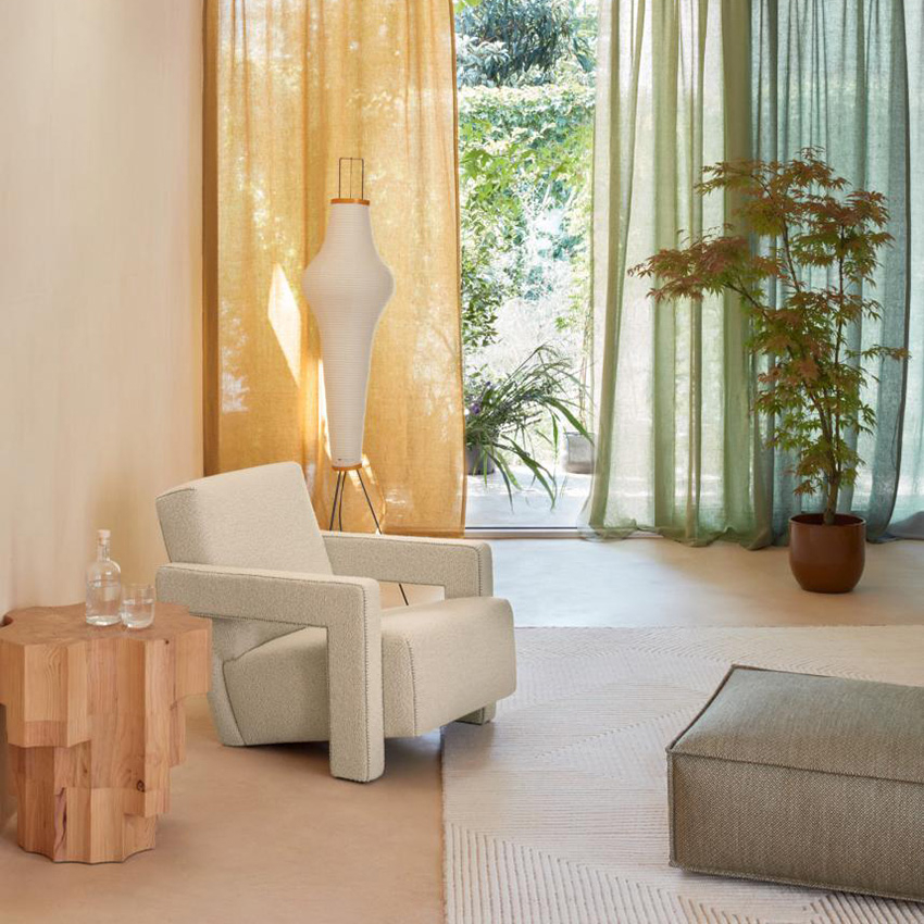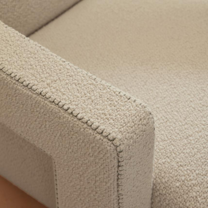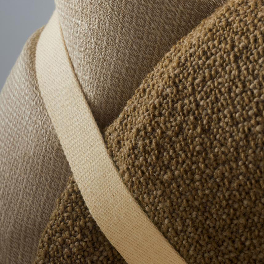 Édité par Rubelli, le tissu Aries présente une surface unie, parcourue par l’écho discret d’un bouclé resserré. Sa structure compacte en laine concentre la forme. Un fond contrasté, souligné par la fibre naturelle, accentue l’effet de relief. Cette légère dissonance visuelle intensifie la tridimensionnalité et inscrit le textile dans une géométrie dense et silencieuse.