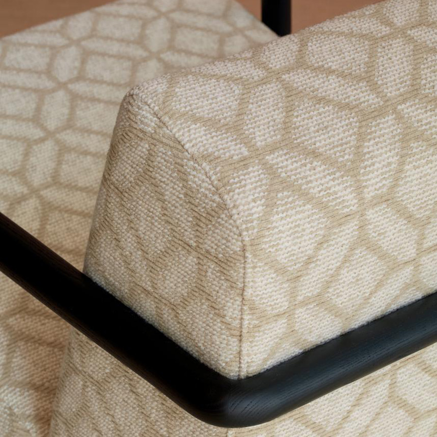 Le tissu Tiles signé Dominique Kieffer dessine un motif géométrique inspiré des emboîtements de carreaux anciens. Chaque ligne suit une trame rigoureuse qui révèle une texture dense animée de fines ondulations. Composé en partie de coton recyclé et de jute, ce textile associe la richesse des fibres naturelles à la structure régulière de la forme.
