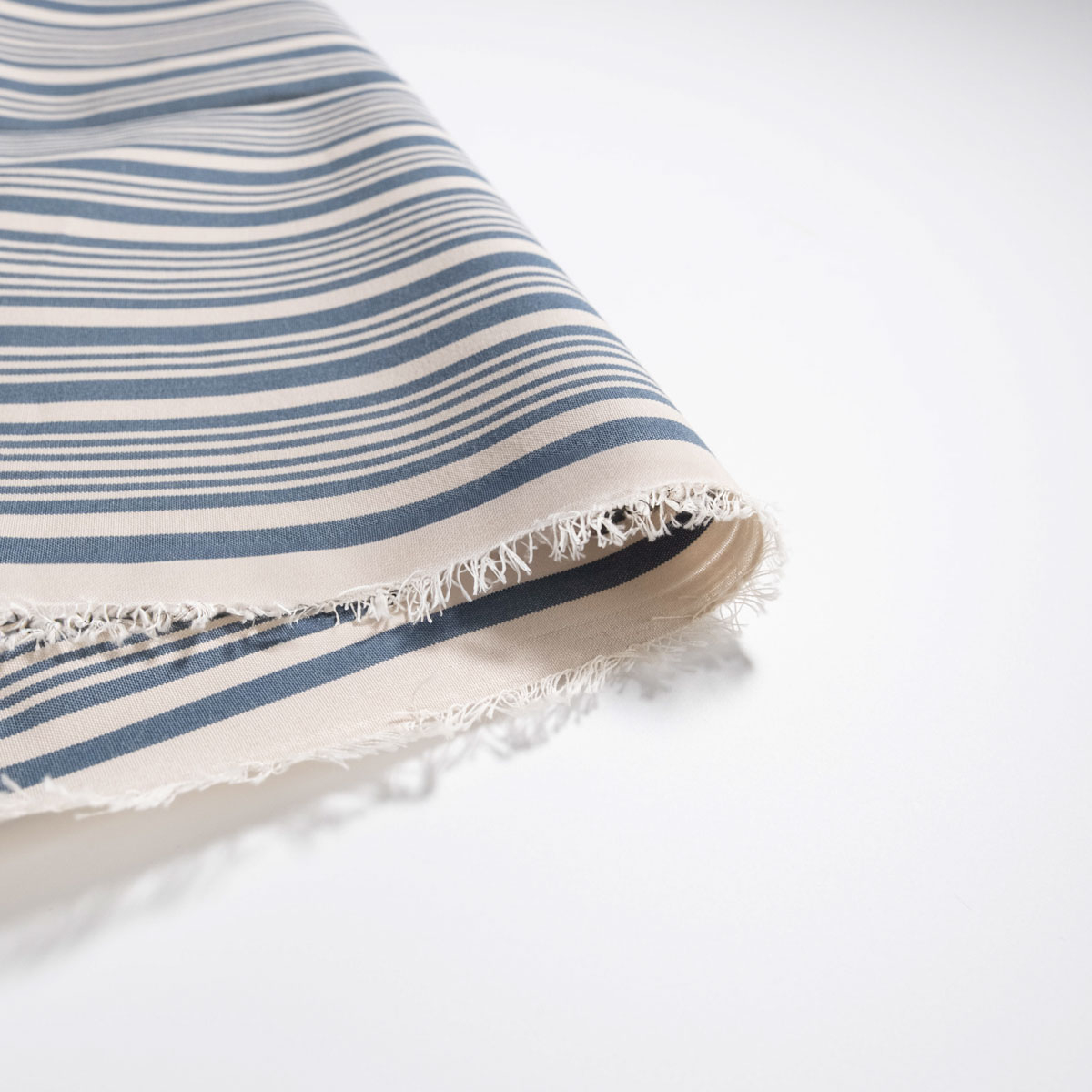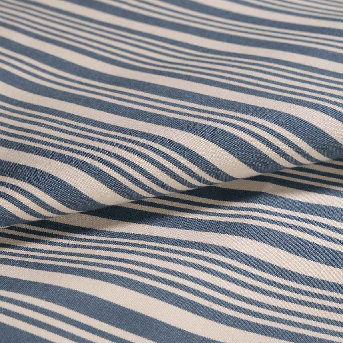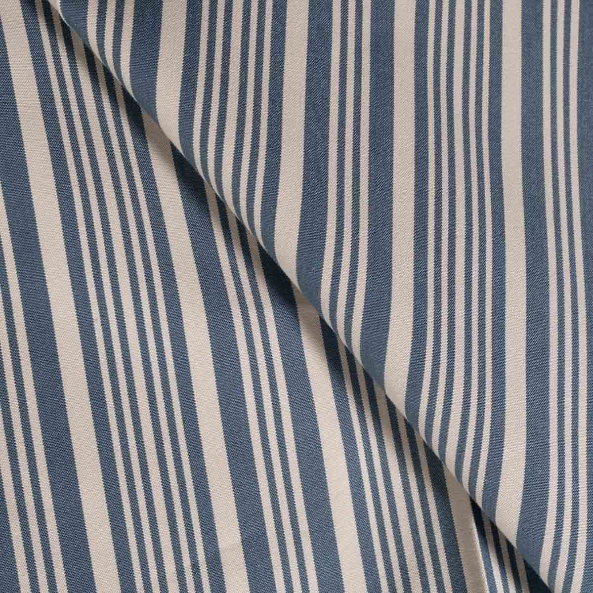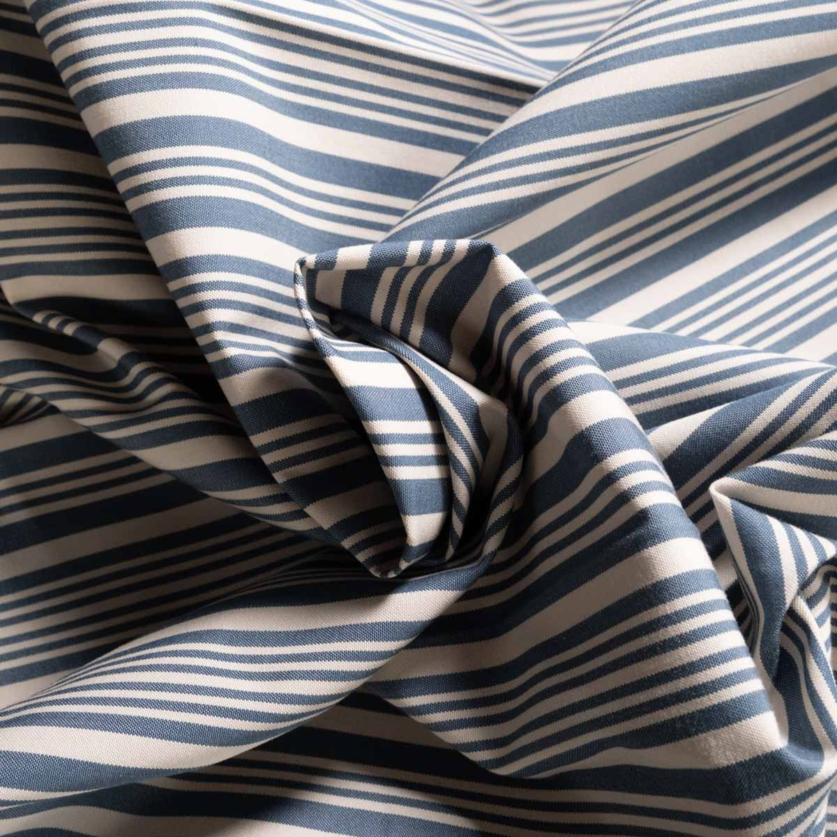 Dans un rythme cadencé, des rayures verticales, fines et épaisses, se succèdent sur le tissu Alain Stripe de Ralph Lauren. Entièrement composé de coton, ce tissu exprime la douceur textile dans une réinterprétation contemporaine du motif rayé. Sobre et structuré, chaque trait évoque l’élégance d’un classicisme revisité, traversé d’un souffle marin discret.