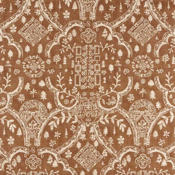 Le tissu Topiary View arbore un motif architectural stylisé, où s’organise un jardin décoratif esquissé depuis les hauteurs. Allées sinueuses, haies sculptées et tracés végétaux composent une carte silencieuse, empreinte de calme et de rigueur. Le coton et le chanvre servent de fond naturel à une étoffe structurée et fantaisiste. Sanderson suggère une vision du paysage à la fois ordonnée et poétique.