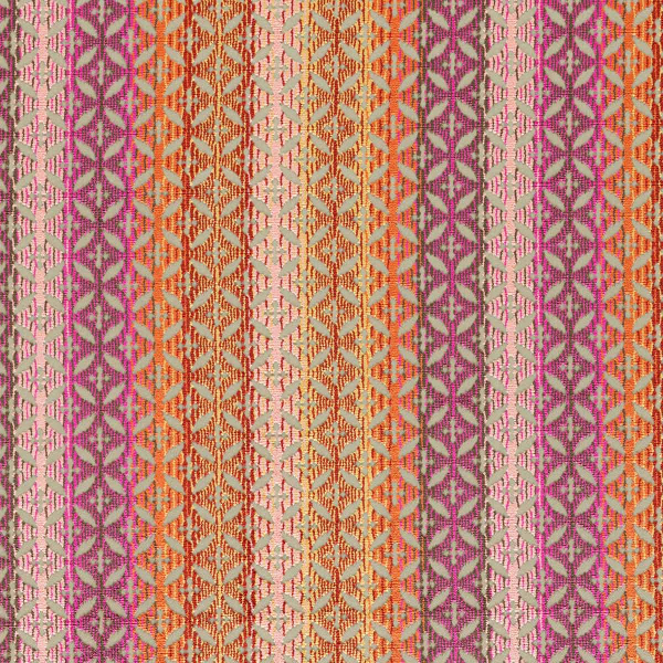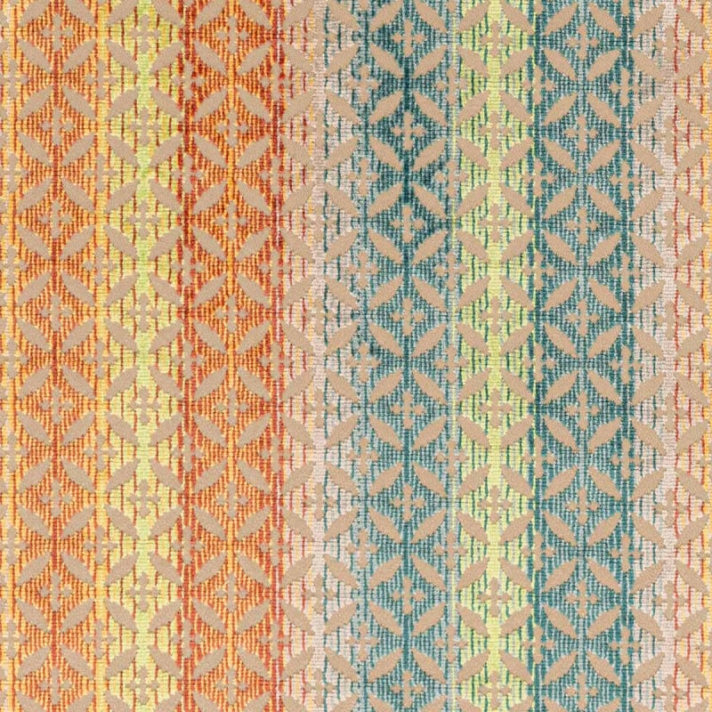 Le tissu Hoshi présente un motif géométrique composé de losanges et de bandes verticales régulières. Avec précision, les figures s’organisent et tracent une structure visuelle maîtrisée. Le dessin alterne diverses teintes, instaurant un rythme graphique équilibré. Ce textile signé K3 design by Kenzo Takada exprime un agencement à la fois rigoureux et vibrant.