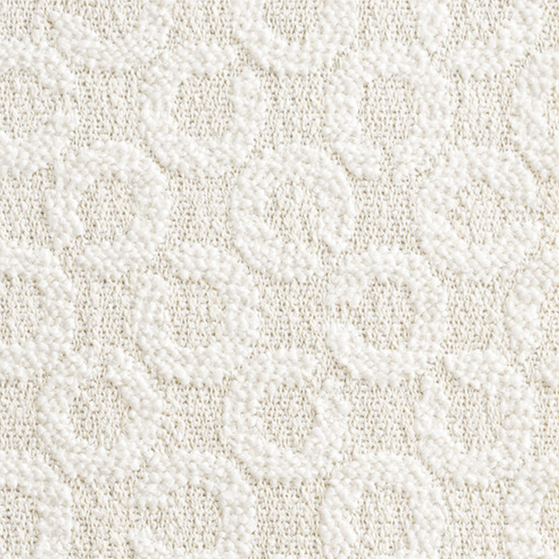Le tissu Oolong Outdoor présente un motif géométrique composé d’anneaux en volume, rigoureusement répartis sur la surface. Chaque cercle s’inscrit dans une trame continue, créant un enchaînement régulier aux contours nets. Le fil bouclé apporte des variations de texture et accentue la dimension tridimensionnelle du dessin. Dedar signe ici une structure à la fois rythmée et tactile.