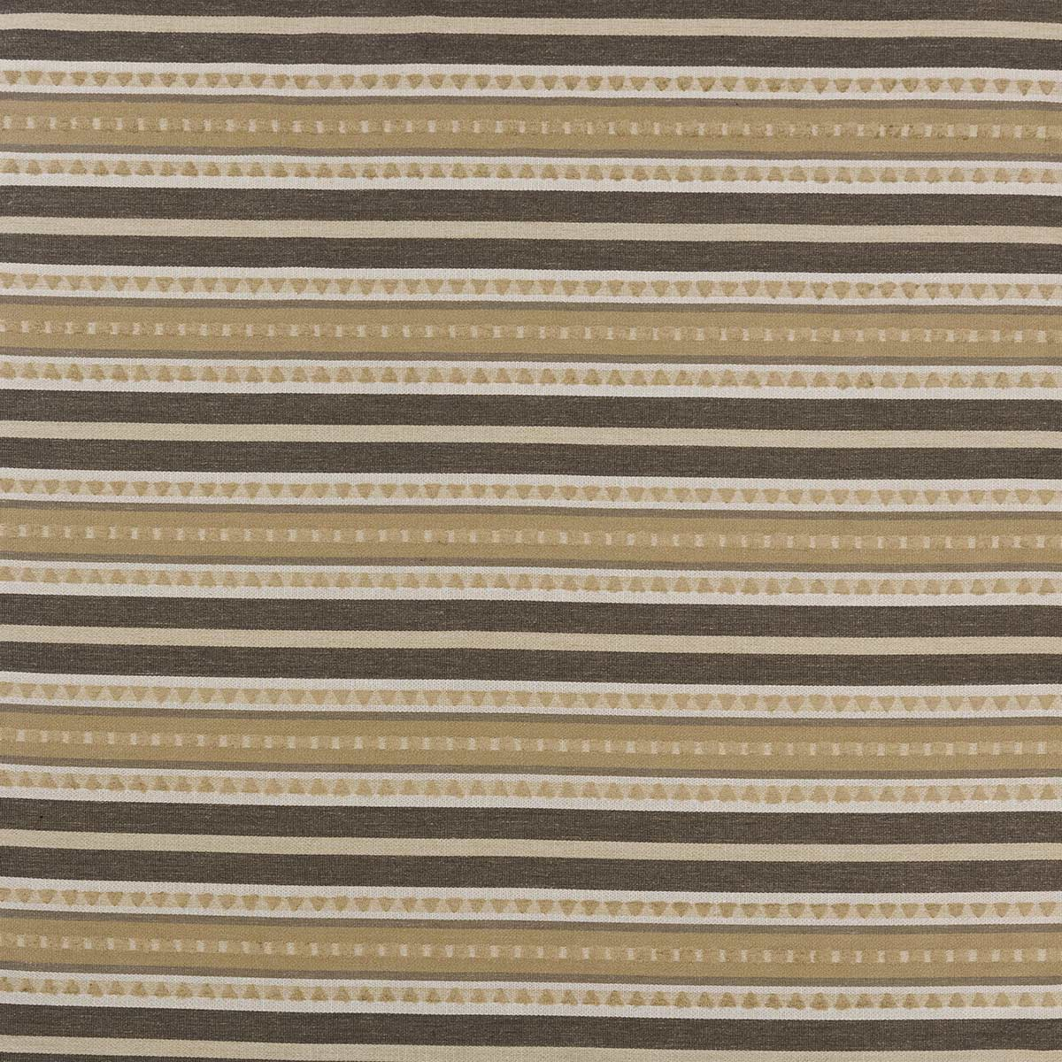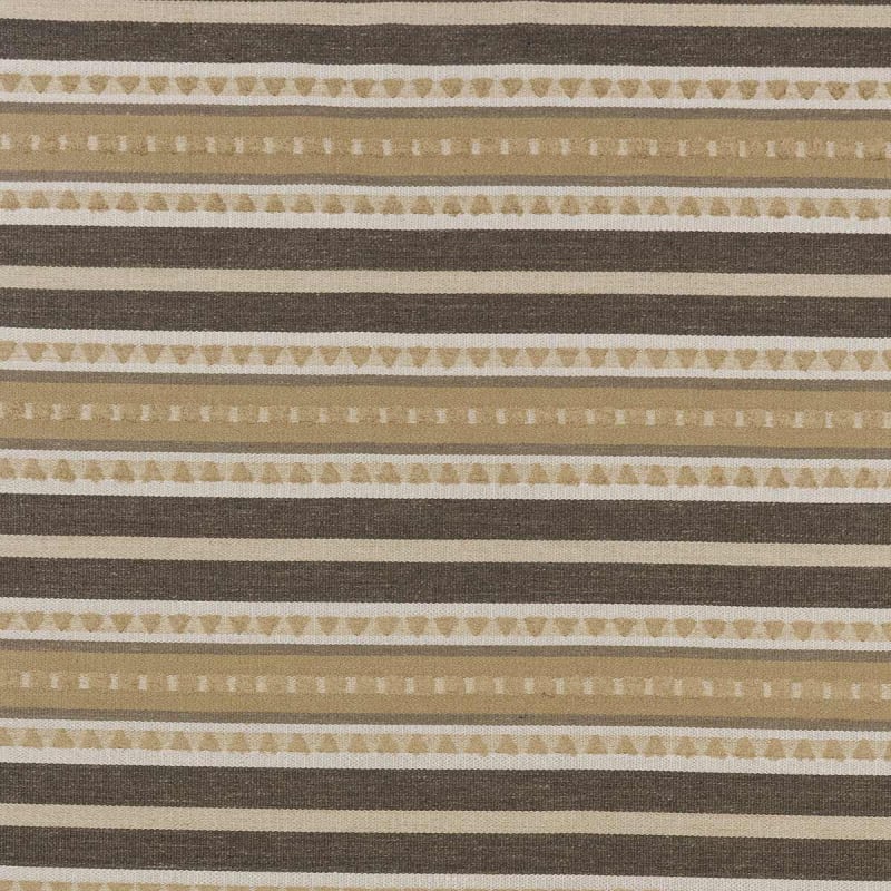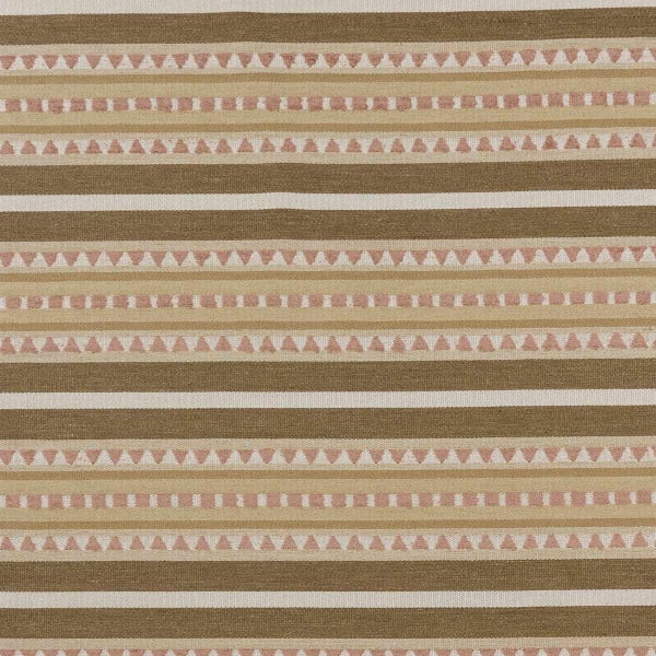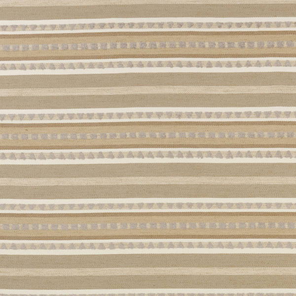 Le tissu Simien présente un motif géométrique à la fois sobre et expressif. Des rayures horizontales larges alternent avec des bandes plus étroites, créant un rythme visuel régulier. Des triangles tuftés ponctuent certaines rangées pour conférer une identité singulière à cette composition signée Osborne and Little. L’ensemble suggère un jeu subtil d’ombre et de matière, discret, mais captivant.