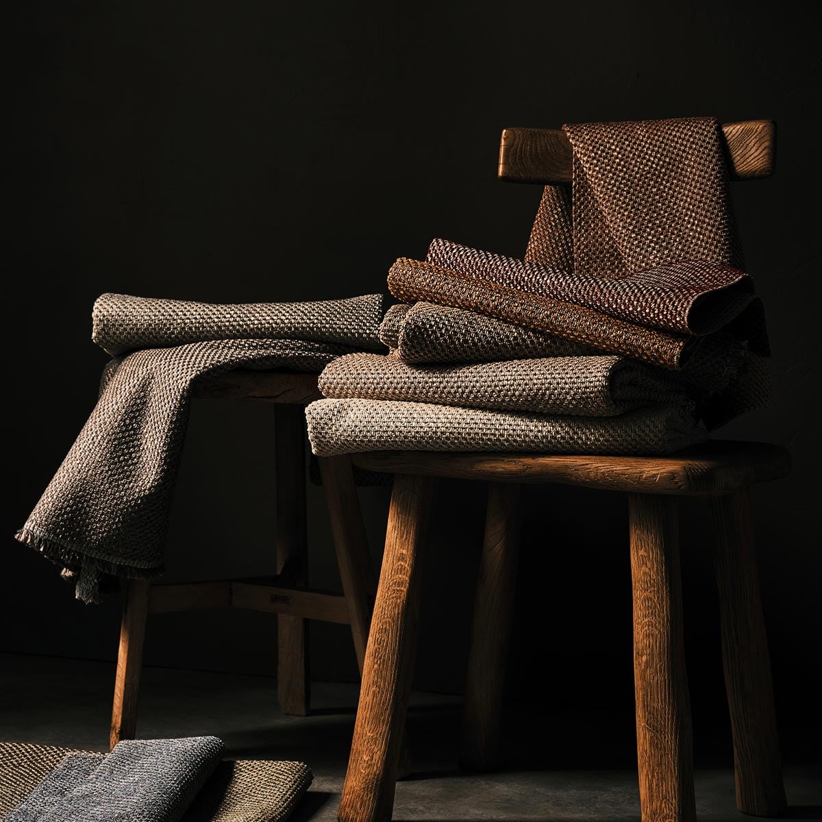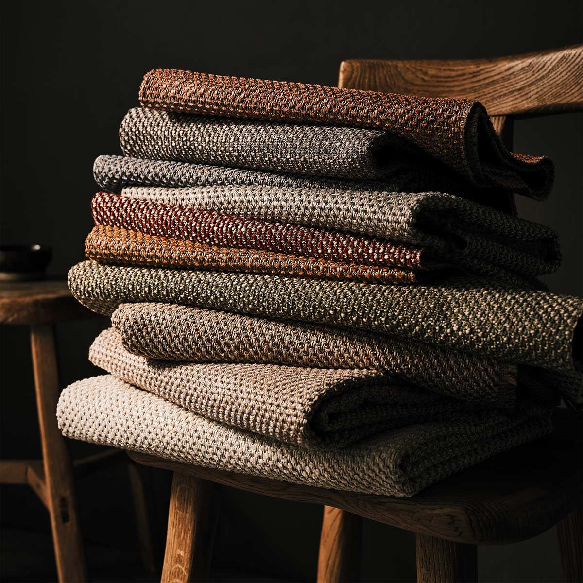 Le tissu Chorus au motif texturé présente de petits reliefs disposés avec régularité. De courts segments de fil ponctuent la surface, comme des points brodés et alignés sur un fond discret. Le contraste entre éléments surélevés et base tressée crée un effet de rythme visuel. Osborne and Little propose une composition riche en nuances, à la fois graphique et tactile.